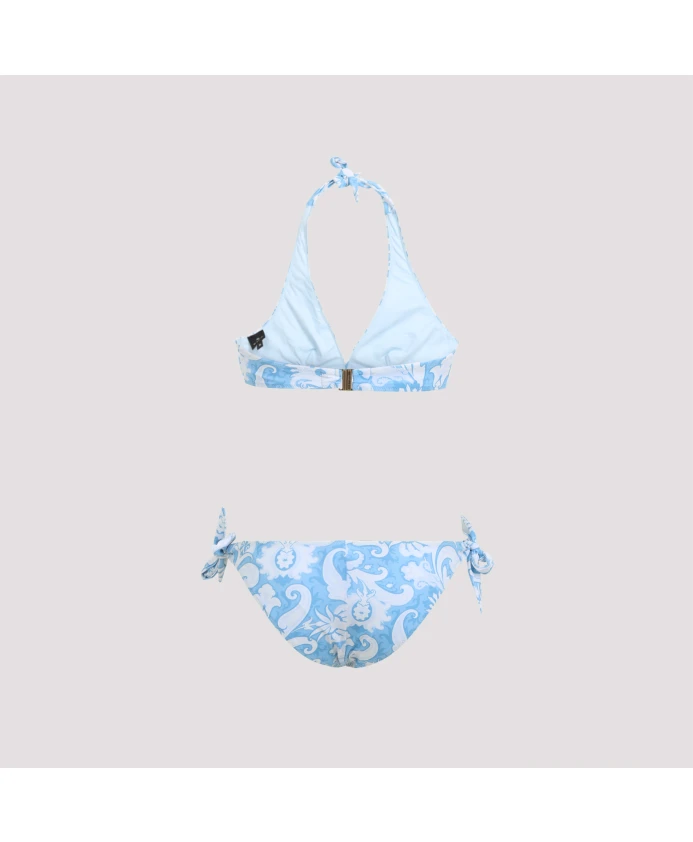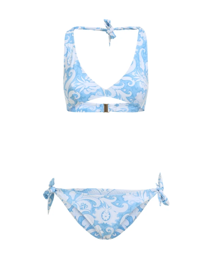 Откройте для себя элегантность синего бикини от Etro, изготовленного из светло-голубой эластичной ткани с фирменным принтом. Идеальное для пляжа, это бикини имеет треугольный топ с завязками и застежкой-пряжкой для надежной фиксации. Ключевые особенности: Светло-голубой | Синий | Полиамид | Завязки | Застежка-пряжка | На подкладке | Треугольный топ | Фирменный принт | Размер и посадка: Стандартная посадка | Состав и уход: 72% полиамид | 28% эластан | Не указано