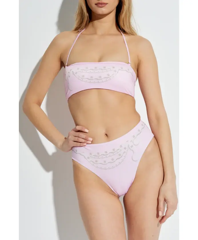 Откройте для себя плавки Versace с завышенной талией, сочетающие в себе комфорт и элегантность, идеально подчеркивающие женственный силуэт. Их отличительная особенность - декоративный узор в виде цепочек по верхнему краю, добавляющий неповторимый шарм. Ключевые характеристики: Розовый | Полиэстер | Эластан | Завышенная талия | Узор в виде цепочек | Размеры и посадка: Полная длина, завышенная талия | Состав и уход: Полиэстер | Эластан