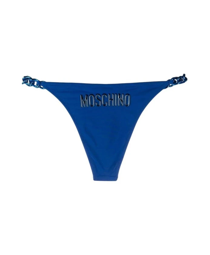 Плавки-бикини Moschino Logo-Plaque - стильный вариант купальника с эффектной логотипной пластиной и цепочкой, идеально подходящий для того, чтобы произвести впечатление на пляже или у бассейна. Основные характеристики: Синий | Полиамид | Эластичный материал | Логотипная пластина | Цепочка | Размер и посадка: Стандартный размер | Состав и уход: 80% полиамид | 20% эластан | Только ручная стирка
