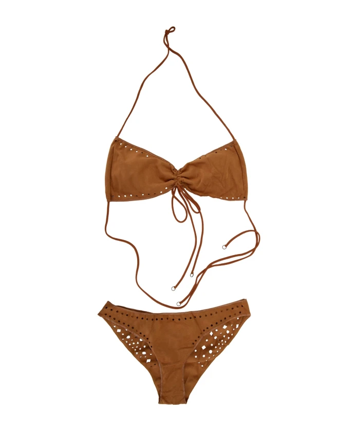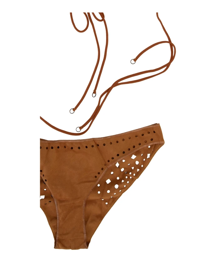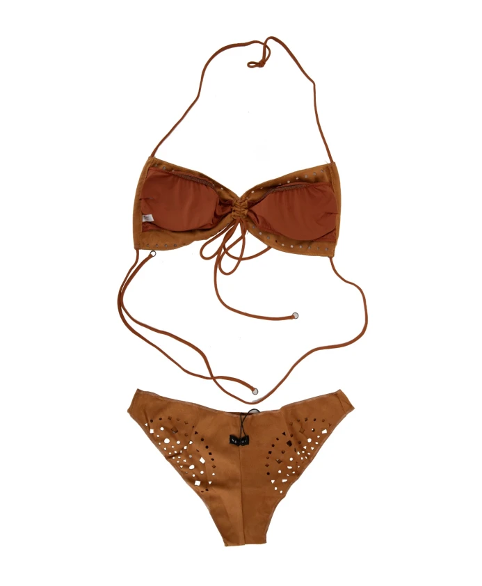 Откройте для себя стильный женский купальник-бикини Me Fui, изготовленный из 90% полиэстера и 10% эластана. Этот купальник из двух частей состоит из бюстгальтера с мягкими вставками, съемными подушечками и шнуровкой на спине, а также эластичных трусиков с нашивкой с логотипом на спине и перфорированной поверхностью.