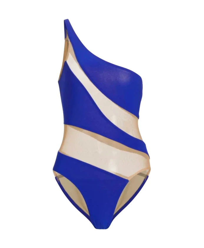 Подчеркните свой пляжный образ с помощью этого купальника Norma Kamali привлекательного синего цвета. Он имеет высокий вырез для ног, визуально удлиняющий ноги, сетчатые бретели и вставки из телесной сетки. Изготовлен из высококачественных материалов: 95% полиэстера и 5% эластана.