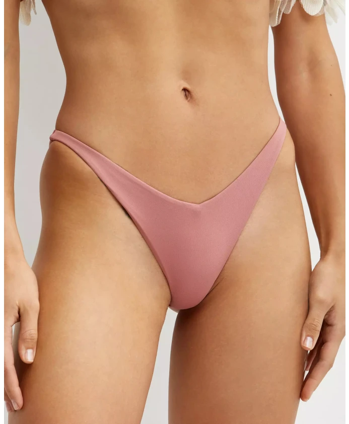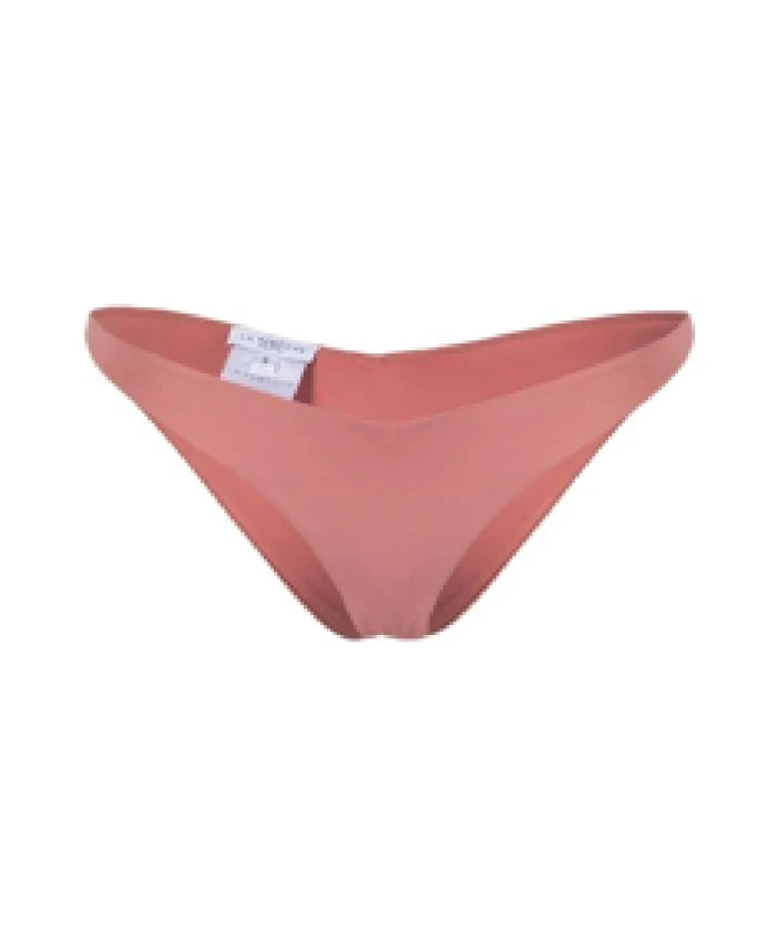 Трусики от бикини La Revêche Kamila розового цвета, треугольной формы, с низкой спинкой и высокой талией, изготовлены из высококачественной эластичной ткани. Состав: 86% полиамид, 14% эластан.