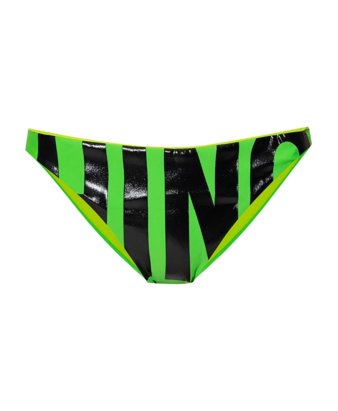 Зеленые плавки от бикини с черным логотипом Moschino.