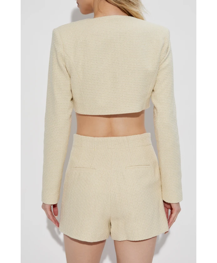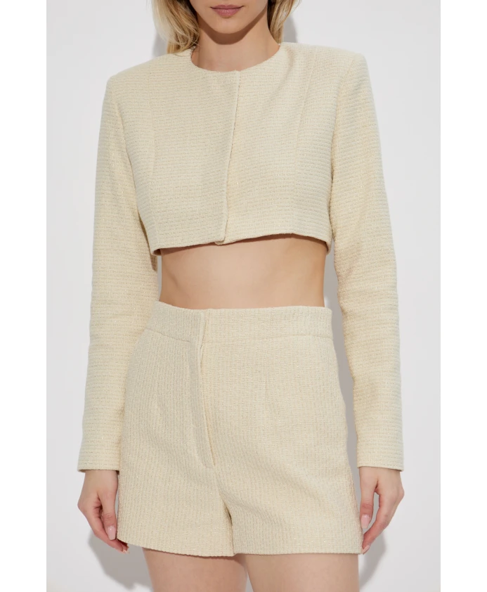 Представляем укороченную куртку SALINE из эксклюзивной коллекции Iro, созданной братьями Ариком и Лораном Биттонами. Эта невероятно элегантная куртка, вдохновленная парижской эстетикой, представляет собой идеальное сочетание классического и современного стиля. Изготовленная из материалов высочайшего качества, внешняя часть представляет собой тщательно подобранную смесь хлопка, полиэстера, слегка мерцающей металлической нити и полиамида. Внутренняя подкладка куртки выполнена из смеси вискозы и хлопка, обеспечивающей комфорт. Рисунок ткани сдержанный, но кремовый оттенок с мягким блеском подчеркивает элегантность куртки. Укороченный крой, доходящий чуть выше талии, и отсутствие видимых застежек спереди подчеркивают минималистичный дизайн. Застегивается на кнопки, идеально подходит для изысканных выходов и прекрасно сочетается с представленными в комплекте шортами. ПОЧЕМУ СТОИТ КУПИТЬ ЭТОТ ТОВАР? * Изысканный дизайн, вдохновленный парижским шиком. * Уникальное сочетание материалов с легким блеском. * Универсальный кремовый цвет, подходящий ко многим стилям. * Высокое качество пошива, обеспечивающее комфортное ношение. Параметры модели: Рост: 177 см, Обхват груди: 83 см, Обхват талии: 61 см, Обхват бедер: 89 см. Модель носит размер: 36