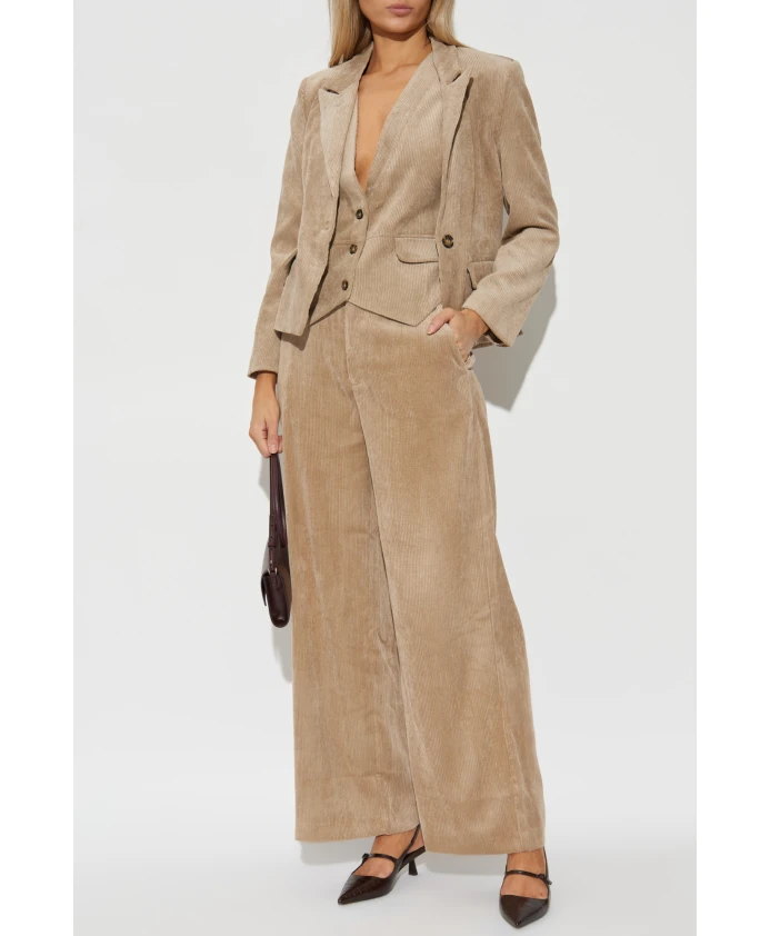 Блейзер LAWO от MUNTHE - изысканный выбор для ценителей классической моды и утонченной роскоши. Эта модель впечатляет классическим, приталенным кроем с немного подчеркнутой талией и удлиненными широкими лацками, которые акцентируют стильную линию плеч. Насыщенная бежевая вельветовая ткань с выраженной ребристой текстурой добавляет изюминку общему дизайну, подчеркивая утонченность материала. Уникальный характер блейзера дополнительно подчеркивается большой, привлекательной пуговицей коричневых и бежевых тонов и широкими клапанами на передних карманах. Маленькие пуговицы на рукавах гармонируют с основной застежкой, создавая цельный дизайн. Блейзер не имеет дополнительных узоров, что подчеркивает оригинальность материала. ПОЧЕМУ СТОИТ КУПИТЬ ЭТОТ ИЗДЕЛИЕ? * Эксклюзивная вельветовая ткань подчеркивает высокое качество и уникальность. * Идеальный крой и изысканные детали излучают утонченный стиль. * Дизайн вдохновлен датскими традициями искусства и ремесла. * Эта модель идеально сочетается как с формальной, так и с более повседневной одеждой. * Одежда, создающая современный силуэт и гарантирующая комфорт. Параметры модели: Рост: 176 см, Обхват груди: 85 см, Обхват талии: 60 см, Обхват бедер: 89 см. Модель носит размер: 36