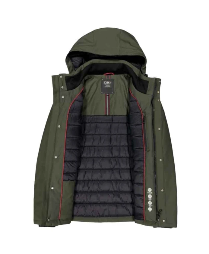 Куртка CMP из софтшелла с подкладкой сочетает в себе мембрану Clima Protect и утеплитель Feel Warm Flat, обеспечивая воздухопроницаемость и водоотталкивающие свойства в холодных и влажных условиях. Она разработана для повседневного зимнего использования и имеет практичные функции, такие как съемный капюшон и карманы на молнии. Ключевые характеристики: Зеленый | Полиэстер | Водоотталкивающий (WP 7000) | Воздухопроницаемый (MVP 3000) | Водоотталкивающая обработка | Теплоизоляция (Feel Warm Flat 160 г) | Съемный капюшон | Два боковых кармана на молнии | Регулируемые манжеты | Передняя молния с ветрозащитной планкой | Капюшон | Внешний материал софтшелл | Ветрозащитная планка на передней молнии | Размеры и посадка: Вес: 1155 г | Длина: 76 см | Стандартный крой | Состав и уход: Внешняя ткань: 90% полиэстер, 10% эластан | Внутренняя ткань: 100% полиэстер | Подкладка: 100% полиамид | Наполнитель: 100% полиэстер (плотность ткани 160 г) | Бережная стирка при температуре не выше 30°C. Не отбеливать. Не подвергать химчистке. Сушка в сушильной машине при температуре не выше 60°C. Профессиональная влажная чистка, щадящий режим. Не гладить.
