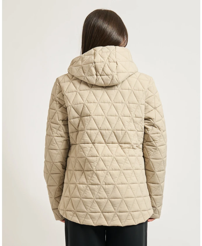 Стеганая куртка Lil Diamond от K-Way сочетает в себе легкий утеплитель Primaloft и водоотталкивающий, ветрозащитный нейлон для комфортной защиты в переходный период. Короткий треугольный стеганый силуэт и утепленный капюшон обеспечивают практичное тепло и лаконичный, обтекаемый вид. Ключевые особенности: Бежевый | Нейлон | Водоотталкивающий | Ветрозащитный | Легкий утеплитель (Primaloft) | Утепленный капюшон с внешней эластичной кулиской | Застежка на молнию | 2 кармана на кнопках | Треугольная стежка по всей поверхности | Укороченная длина | Утепленный капюшон с внешней эластичной кулиской | Белый силиконовый логотип | Размеры и посадка: Приталенный крой. Модель носит размер S - рост 1,65 м | Состав и уход: Наполнитель: 100% полиэстер | Внешний материал: 100% нейлон | Подкладка: 100% нейлон | Профессиональная ручная стирка, деликатный режим; Не отбеливать; Не сушить в сушильной машине; Не гладить; Не подвергать химчистке; Стирать отдельно; во время стирки бережно относиться к аксессуарам.