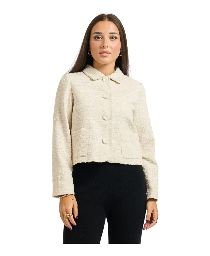 Куртка Iblues CALAMAI - это эффектная вещь, выполненная из жаккардовой ткани с ламе, имеющая свободный силуэт и рубашечный воротник. Она сочетает в себе детали классического кроя с едва заметной металлизированной текстурой для элегантных дневных образов. Ключевые особенности: Бежевый | Слоновая кость | Жаккардовая ткань с ламе | Застежка на пуговицы | Накладные передние карманы | Свободный силуэт | Рубашечный воротник | Длинные рукава | Накладные карманы | Жаккардовая ткань с ламе | Пуговицы, обтянутые тканью | Размеры и посадка: Рост модели 1,65 м; размер 40 IT | Стандартный крой | Состав и уход: Ткань: 35% хлопок, 31% полиэстер, 17% акрил, 10% полиамид, 4% шерсть, 2% другие волокна, 1% металлизированное волокно | Подкладка: 64% ацетат, 36% полиэстер | Не стирать; не отбеливать; не сушить в сушильной машине; гладить при температуре не выше 120°C; профессиональная химчистка с перхлорэтиленом (щадящий режим); Не подвергать влажной чистке.