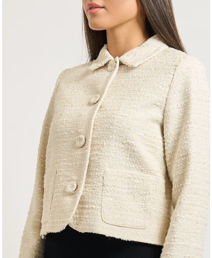 Бренд: Iblues Цвет: бежевый Материалы: состав ткани: 35% хлопок, 31% полиэстер, 17% акрил, 10% полиамид, 4% шерсть, 2% другие волокна, 1% металлизированное волокно | подкладка: 64% ацетат, 36% полиэстер. не стирать; не отбеливать; не сушить в сушильной машине; гладить при низкой температуре (макс. 120°c); профессиональная химчистка с перхлорэтиленом (щадящий режим); не подвергать влажной чистке.