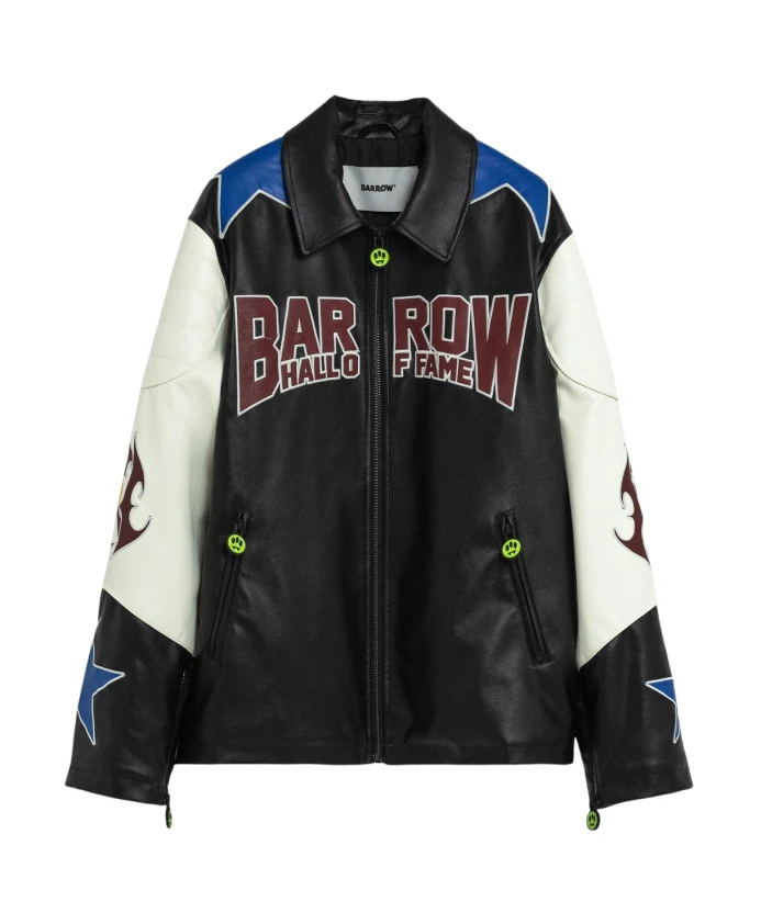 Куртка-косуха Barrow от Barrow - это куртка-косуха из искусственной кожи с застежкой-молнией спереди и классическим воротником, созданная как эффектный элемент верхней одежды с ярким логотипом и готическим рисунком. Ключевые особенности: Многоцветная | Черный | Черный | Полиуретан | Застежка-молния спереди | Боковые карманы | Классический воротник | Логотип Maxi Barrow Hall of Fame спереди | Готический графический принт на рукавах | Нашивка со смайликом на спине | Декоративные контрастные детали на плечах и рукавах | Отделка под искусственную кожу | Состав и уход: Передняя часть, спинка и воротник - Передняя часть: 100% полиуретан; Спинка: 50% полиэстер, 50% вискоза | Вставка и окантовка рукавов - Передняя часть: 100% полиуретан; Спинка: 50% полиэстер, 50% вискоза | Вышивка на плечах / Вышивка на внутренней стороне рукавов / Вышивка с изнаночной стороны - Передняя часть: 100% полиуретан; Спинка: 100% полиэстер