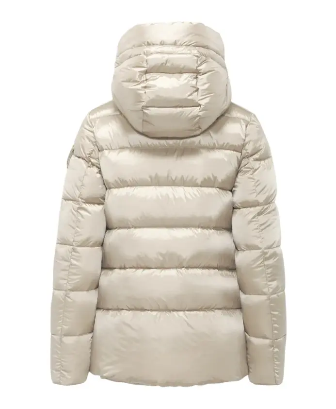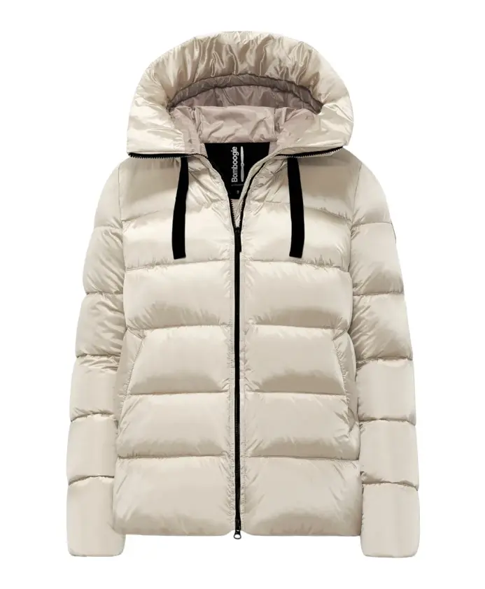 Куртка Bomboogie Rome - это короткая, блестящая нейлоновая пуховая куртка, сочетающая городской стиль с надежным теплом, идеально подходящая для жизни в городе в холодную погоду и активного отдыха на природе. Ключевые особенности: Бежевый | Нейлон | Водоотталкивающая | Ветрозащитная | Обработка «пухонепроницаемый» (предотвращает выпадение перьев) | Высокая теплоизоляция при малом весе | Фиксированный капюшон | Двусторонняя молния (двойные бегунки) | Ребристые внутренние манжеты | Большие боковые карманы | Технические швы | Силуэт А-образный | Глянцевая отделка «цире» с переливающимся эффектом | Слегка закругленный низ | Размеры и посадка: Длина 66,5 см (передний замер, размер 2) | Стандартный крой. Состав и уход: Внешняя ткань: 100% нейлон | Подкладка: 100% нейлон | Наполнитель: 90% гусиный пух, 10% перья, плотность наполнителя 650 | Машинная стирка при 30°C; не гладить; Не сушить в сушильной машине.