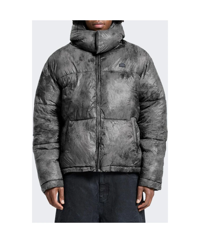 Куртка-пуховик Reternity Wrinkled сочетает в себе технологичную, мятую нейлоновую поверхность и свободный, непромокаемый силуэт, обеспечивая модульное тепло и повседневную городскую одежду. Модель оснащена съемным капюшоном и практичными карманами на молнии для многослойной одежды в холодную погоду. Ключевые особенности: Черный | Нейлон | Утепленная | Теплая | Непромокаемая | Съемный капюшон | Регулируемый низ | Внутренние ребристые манжеты | Множество карманов на молнии | Свободный силуэт | Мятая, матовая текстура | Принт Déliria по всей поверхности | Резиновая нашивка на груди в тон. Размер и посадка: Соответствует стандартному размеру - заказывайте свой обычный размер. | Состав и уход: Внешняя ткань: 100% нейлон | Наполнитель: Полиэстер | Бережная стирка в холодной воде наизнанку. Не отбеливать. Не сушить в сушильной машине. Сушить в подвешенном состоянии. Застегнуть молнии перед стиркой.