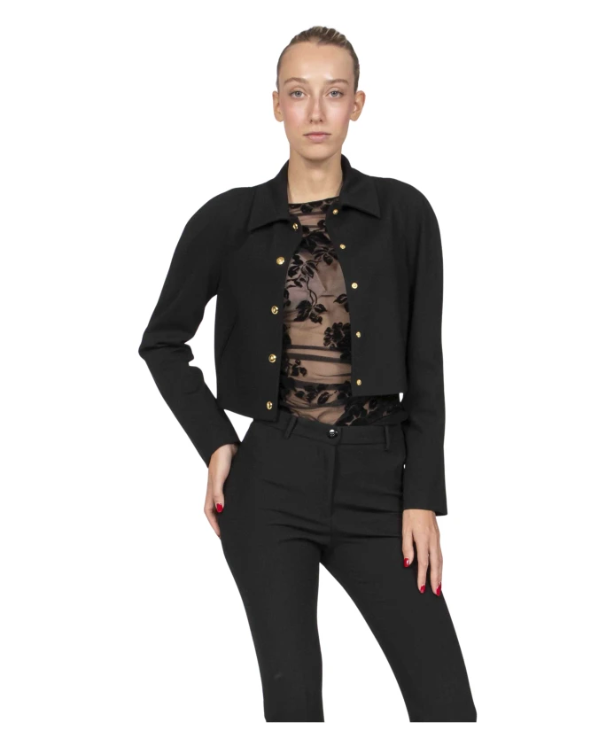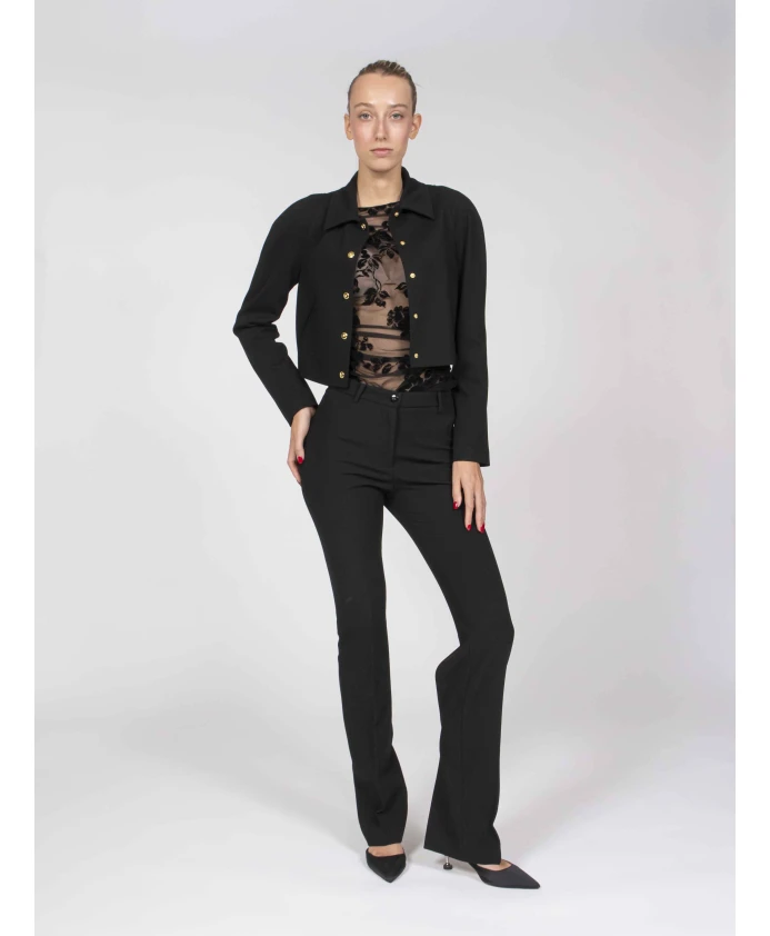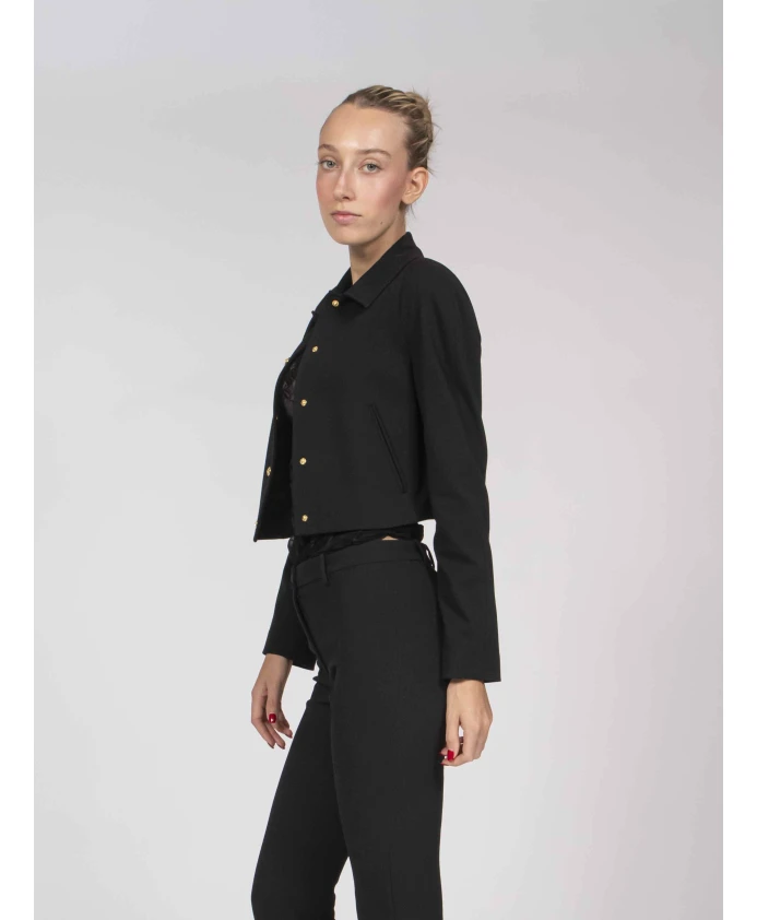 Куртка Pinko Guazzetto - это короткая куртка из миланского трикотажа, сочетающая в себе изысканный силуэт и минималистичную эстетику. Техническая эластичная ткань обеспечивает облегающий, элегантный слой, идеально подходящий для повседневных образов и офисной одежды. Ключевые особенности: Черный | Вискоза | Эластичная ткань | Технический миланский трикотаж | Полностью на подкладке | Без внешних карманов | Минималистичный дизайн | Классический воротник рубашечного типа | Прямой низ | Длинные рукава | Текстура миланского трикотажа | Минималистичный силуэт | Размеры и посадка: Приталенный крой | Состав ткани и уход: 67% вискоза, 28% полиамид, 5% эластан (внешняя ткань) | 67% ацетат, 33% полиэстер (подкладка) | Не стирать. Не отбеливать. Не сушить в сушильной машине. Гладить при температуре не выше 110°C. Бережная химчистка с использованием тетрахлорэтилена. Аппликации: защитить перед чисткой.