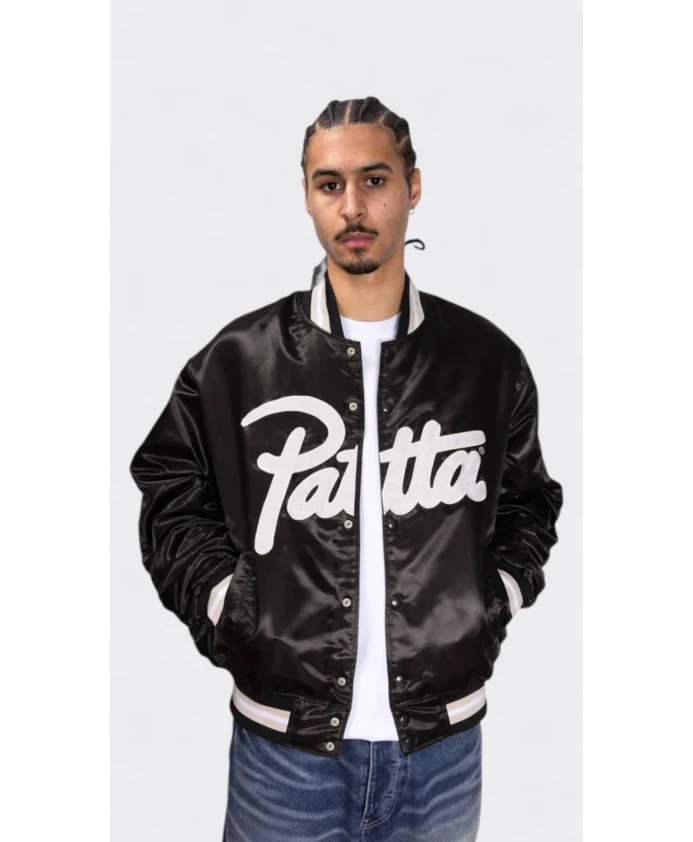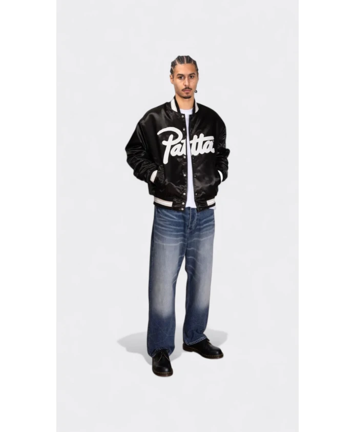 Атласная университетская куртка с логотипом Script Patta, черный 30 036₽