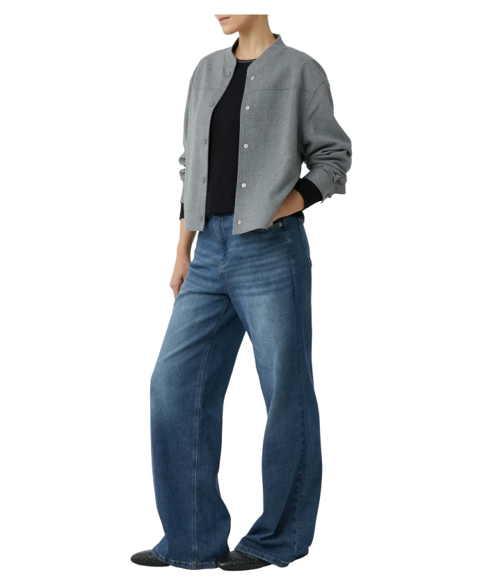 Куртка Comma College Jacket свободного кроя - это укороченная фланелевая куртка в стиле университетской формы, предназначенная для повседневной и деловой одежды. Она сочетает в себе мягкую, слегка подкладку и классические детали на кнопках для удобного многослойного ношения и повседневного использования. Ключевые особенности: Серый | Фланель | Мягкая на ощупь | Легкая подкладка | Простой уход | Застежка на кнопки | Накладные карманы | Легкая подкладка | Воротник-стойка | Длинные рукава с манжетами | Прямой низ | Кокетка на спине | Размеры и посадка: Свободный крой | Укороченная длина | Материал и уход: Внешняя ткань: 65% полиэстер, 33% вискоза, 2% эластан | Подкладка: 100% полиэстер | Бережная стирка при 30°C; не отбеливать; не сушить в сушильной машине; гладить при низкой температуре (не гладить горячим); профессиональная химчистка (перхлорэтилен) в щадящем режиме.