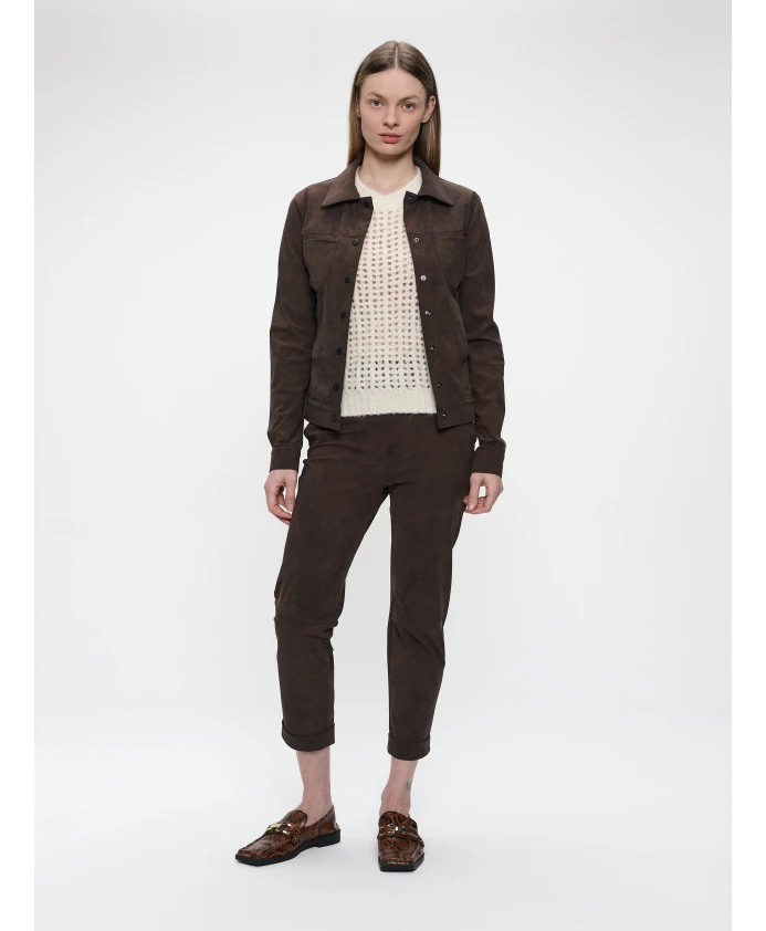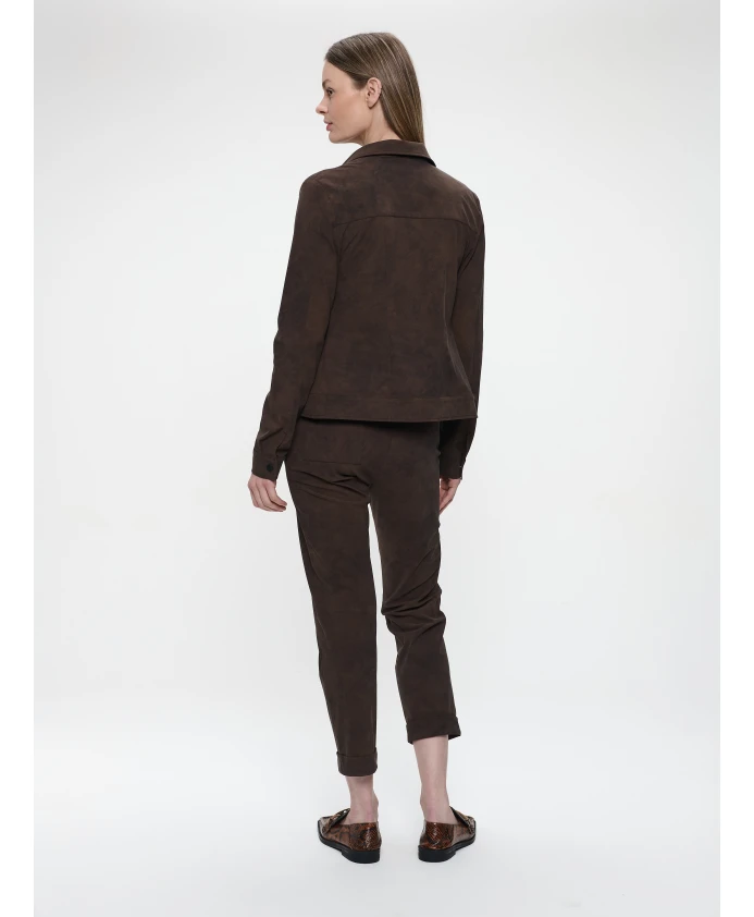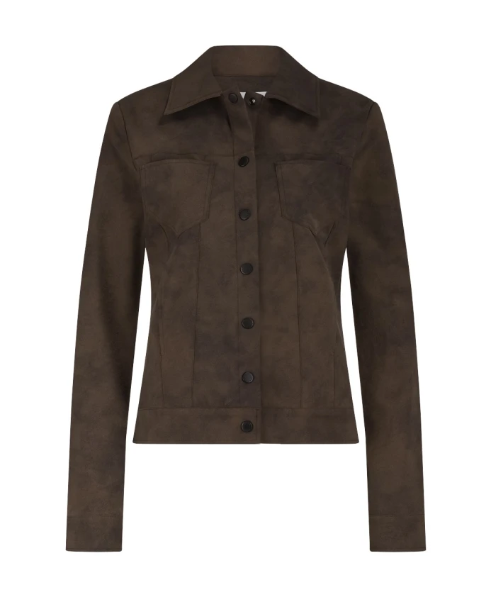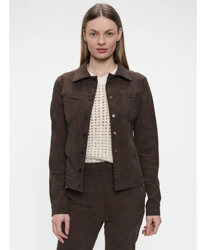 Куртка Jane Lushka Riva переосмысливает классический стиль «дальнобойщика» благодаря техническому трикотажу с эффектом замши, сочетающему эластичность и ворсистую текстуру для создания стильных и непринужденных многослойных образов. Идеально подходит для осени, легко сочетается с трикотажем, джинсами или как часть комплекта. Ключевые особенности: Коричневый | Технический трикотаж | Эластичная ткань | Мягкая, ворсистая отделка | Застежка на пуговицы спереди | Один нагрудный карман | Воротник рубашечного типа | Силуэт «дальнобойщика» | Отделка под замшу | Размеры и посадка: Стандартный крой | Длина до талии | Доступные размеры XXS-XXL | Рост модели 175 см, размер S | Состав и уход: Машинная стирка в холодной воде. Не отбеливать. Не сушить в сушильной машине. Гладить при низкой температуре. Не использовать тетрахлорэтилен.