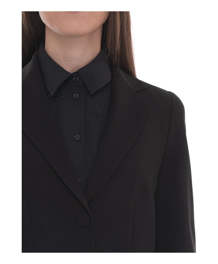 Пиджак PENNYBLACK Intinto - это приталенный двубортный блейзер из эластичной ткани кади, создающий элегантный офисный образ. Его обтекаемый силуэт и незаметные разрезы сзади делают его идеальным для делового стиля и официальных мероприятий. Ключевые особенности: Черный | Полиэстер | Двусторонняя эластичная ткань | Передние карманы | Полностью на подкладке | Небольшие разрезы сзади | Лацканы с вырезом | Однобортная застежка на две пуговицы | Прорезные передние карманы | Разрез сзади | Посадка и размер: Приталенный крой | Состав и уход: Ткань: 92% полиэстер, 8% эластан | Подкладка: 62% ацетат, 38% полиэстер | Не стирать; не отбеливать; не сушить в сушильной машине. Гладить в прохладном месте; профессиональная химчистка (перхлорэтилен, щадящий режим); не стирать влажным способом.
