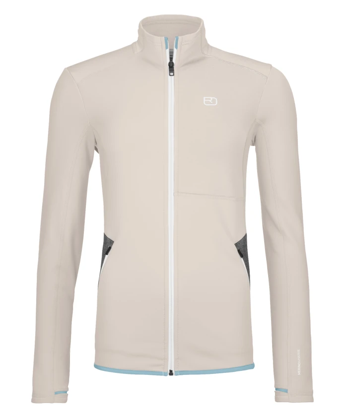 Флисовая куртка Ortovox - это дышащий промежуточный слой, сочетающий в себе комфорт мериносовой шерсти и прочный трикотажный внешний слой. Она предназначена для активного отдыха в горах и повседневного использования в холодную погоду. Ключевые особенности: Белый мел | Мериносовая шерсть и полиэстер | Дышащая | Быстросохнущая | Терморегулирующая | Высокая эластичность | Прочная | Молния по всей длине спереди | Два боковых кармана с подкладкой из лодена | Петли для больших пальцев | Высокий воротник | Матовая трикотажная поверхность | Эргономичный крой | Традиционная деталь из лодена на кармане | Размеры и посадка: Вес: 382 г | Стандартный крой | Состав и уход: 64% полиэстер | 30% натуральная шерсть (OWP-меринос) | 6% эластан | Вставки: 100% натуральная шерсть (OWP-меринос)