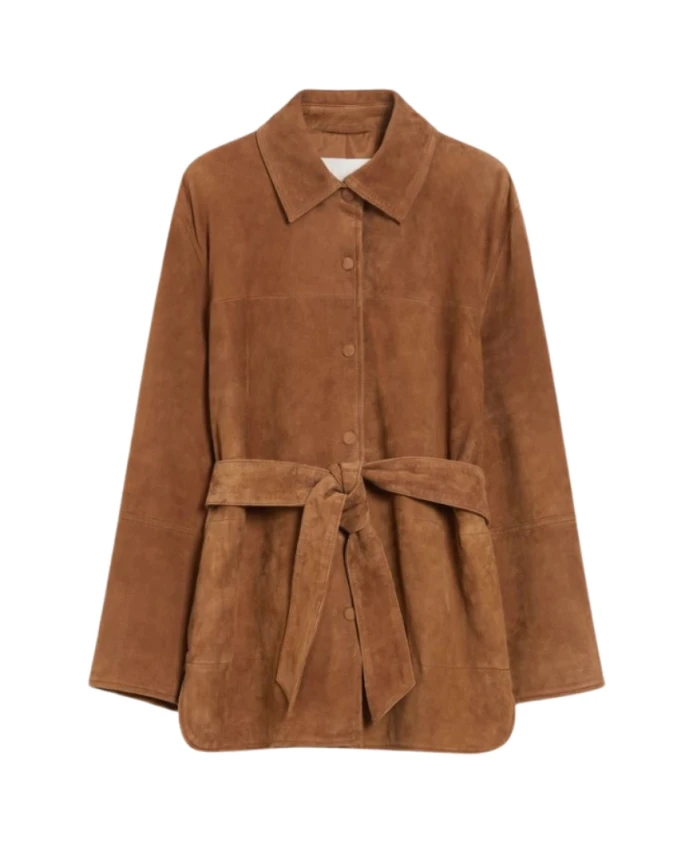 Рубашка-куртка Iblues Gaspare сочетает в себе классический крой и мягкую замшу из козьей кожи, создавая универсальный и изысканный верхний слой, идеально подходящий для расслабленных, но при этом элегантных повседневных образов. Ключевые особенности: Коричневый | Коньячный | Козья кожа | Застежка на кнопки, обтянутые кожей | Ремень в тон | Боковые карманы | Закругленные разрезы по низу | Полностью на подкладке | Рубашечный воротник | Длинные рукава | Силуэт рубашки-куртки | Прямой крой | Замшевая отделка | Размеры и посадка: Стандартный крой | Состав и уход: Козья кожа | Подкладка: 100% полиэстер | Не стирать; не отбеливать; не сушить в сушильной машине; не гладить; не подвергать химчистке; только профессиональная чистка кожи.