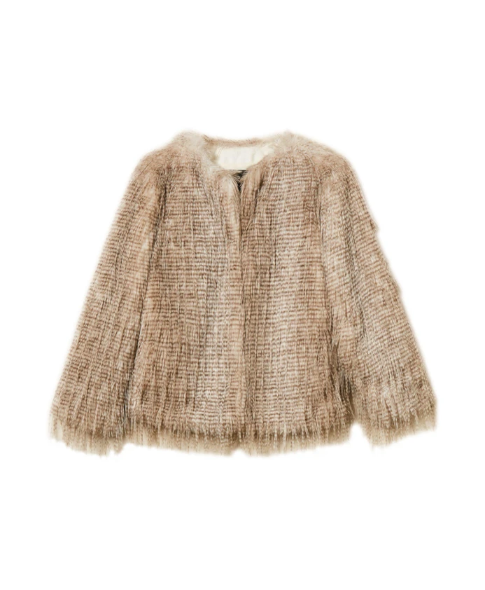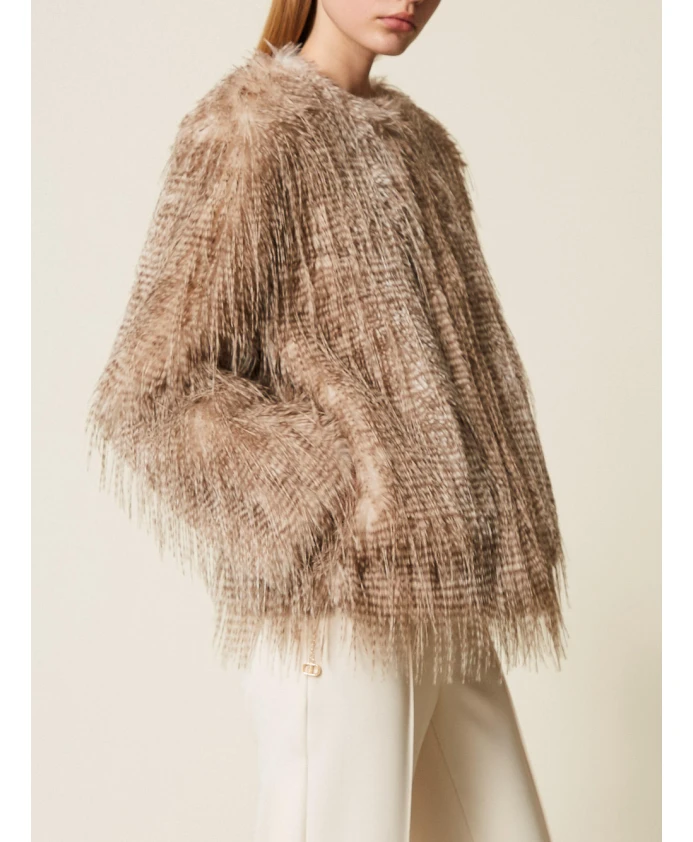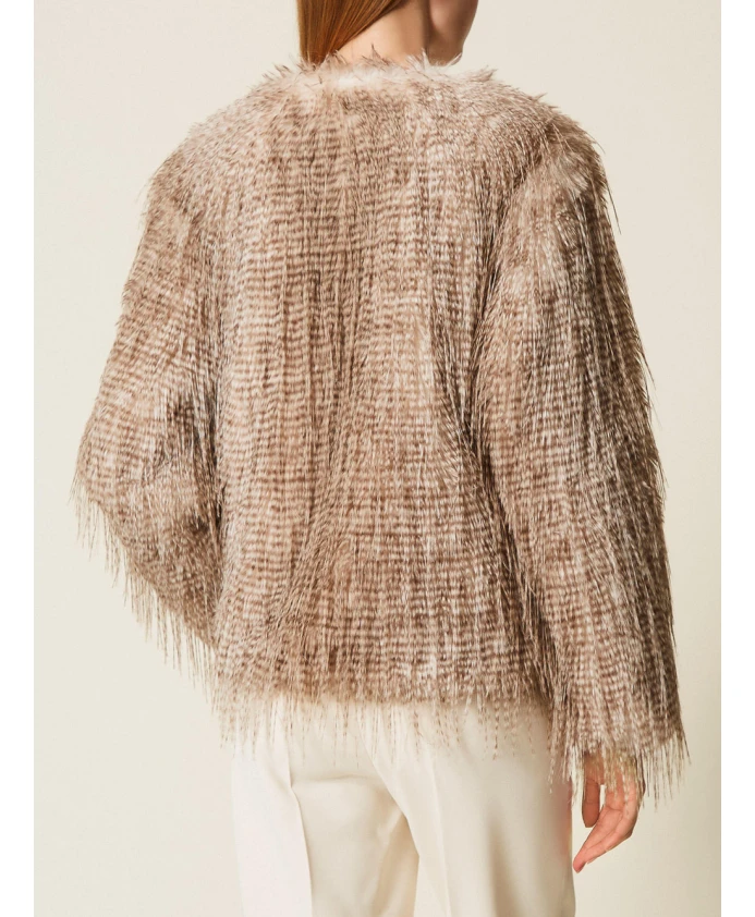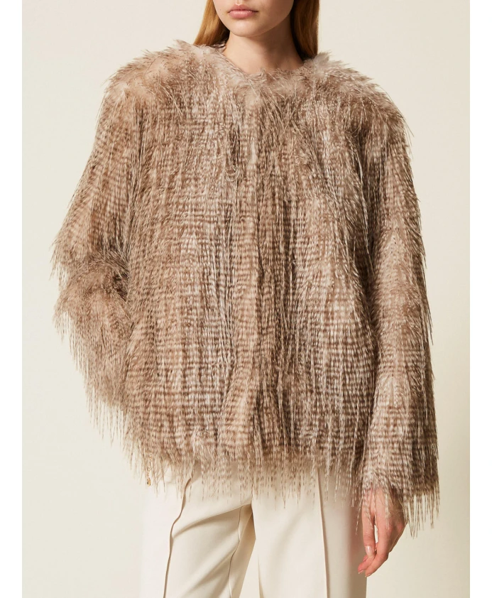 Куртка ACTITUDE Actitude сочетает в себе искусственный мех, имитирующий страусиный, и градиентный принт в коротком современном силуэте, добавляя текстуру и визуальный интерес к образам. Ключевые особенности: Бежевый | Цвет: Поджаренный кокос | Полиэстер | Застежка на крючок и петлю | Врезные боковые карманы | Полностью на подкладке | Круглый вырез | Короткий прямой силуэт | Градиентный принт | Текстура, имитирующая страусиный мех | Размеры и посадка: Прямой крой | Короткая длина | Состав ткани и уход: Верх: 100% полиэстер | Подкладка 1: 100% полиэстер | Подкладка 2: 50% полиэстер, 50% шерсть | Не стирать. Не отбеливать. Не сушить в сушильной машине. Не гладить. Только профессиональная химчистка (перхлорэтилен, щадящий режим).