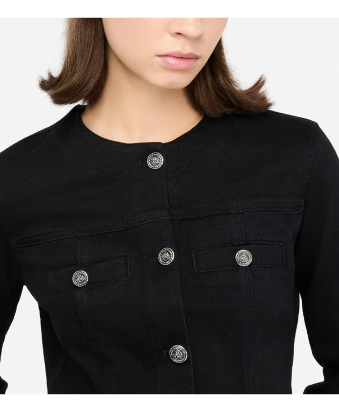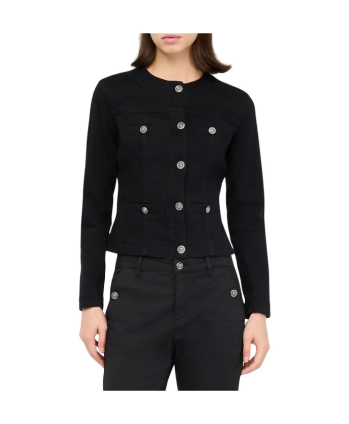 Джинсовая куртка Liu Jo сочетает в себе лаконичный силуэт, круглый вырез, золотистые пуговицы и металлический логотип на спине, создавая изысканный повседневный образ. Ключевые особенности: Черный | Хлопок | Эластичная ткань | Застежка на пуговицы | Нагрудные карманы на пуговицах | Круглый вырез | Металлический логотип на спине | Золотистые пуговицы | Размер: Приталенный | Состав ткани и уход: 94% хлопок | 5% полиэстер | 1% эластан | Бережная стирка при температуре не выше 30°C; не отбеливать; не сушить в сушильной машине; гладить при температуре не выше 110°C; не подвергать химчистке; стирать наизнанку; стирать отдельно; использовать жидкое моющее средство; не тереть во время стирки; не гладить декоративные элементы.