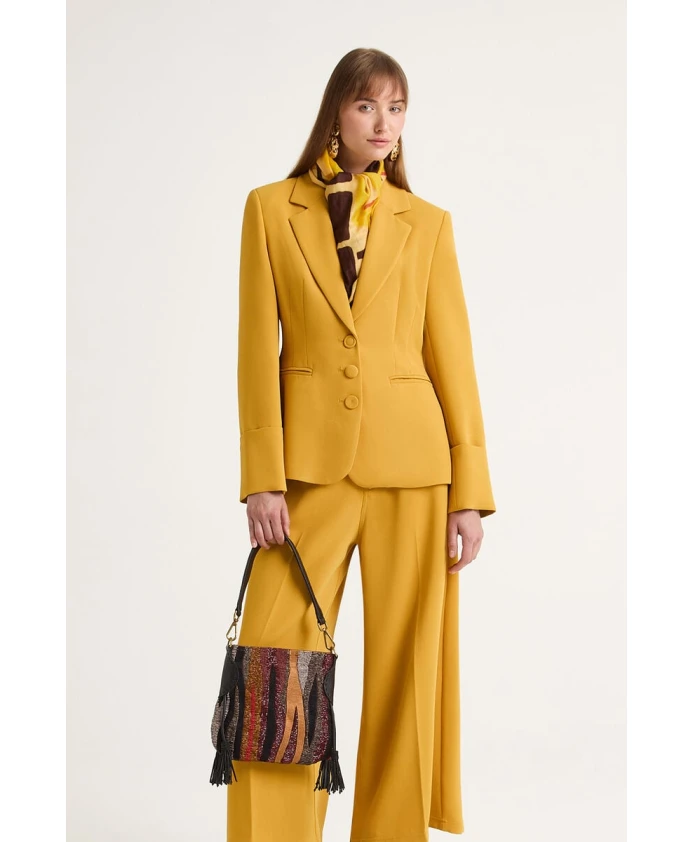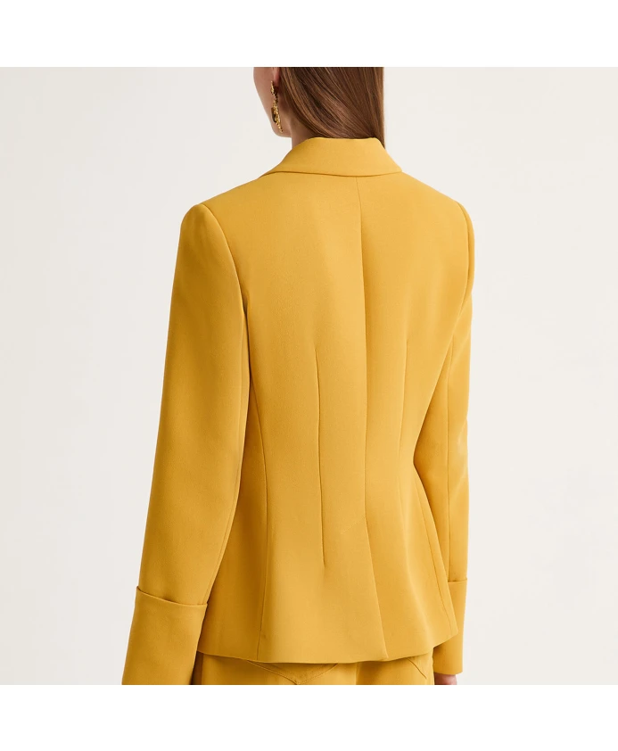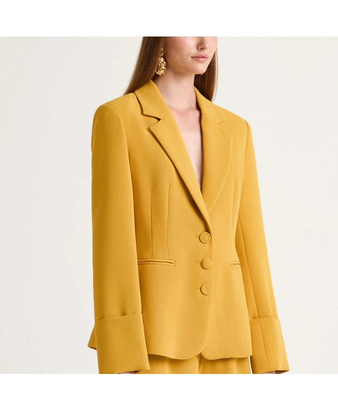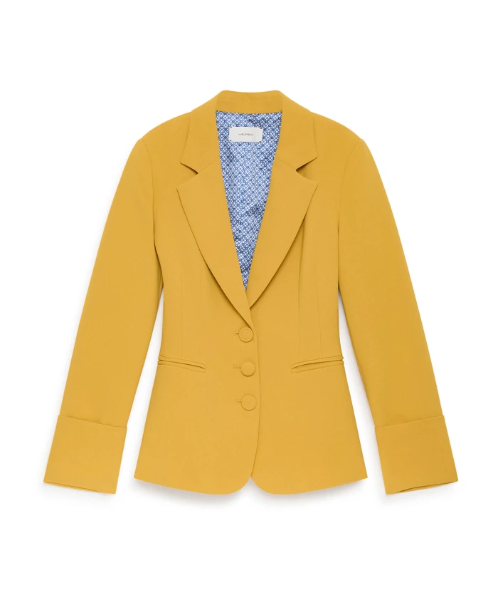 Жакет Maliparmi Sablè из крепа отличается скульптурным, приталенным силуэтом. Созданный для элегантных, строгих образов, он идеально подходит как для деловых встреч, так и для изысканных вечерних нарядов. Ключевые особенности: Горчично-желтый | Полиэстер | Застежка на три пуговицы | Легкие плечевые подкладки | Скульптурная талия | Лацканы с вырезом | Текстура крепа | Длина до бедра | Размеры и посадка: Длина: 64 см | Состав и уход: Материал: 100% полиэстер | Подкладка: 100% полиэстер | Не стирать. Гладить при температуре не выше 110°C. Не сушить в сушильной машине. Не отбеливать. Профессиональная химчистка (перхлорэтилен) - щадящий режим; профессиональная химчистка (углеводороды) - щадящий режим.