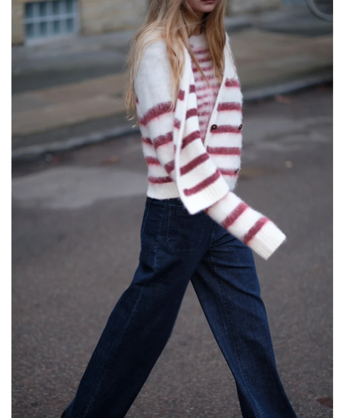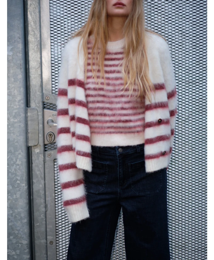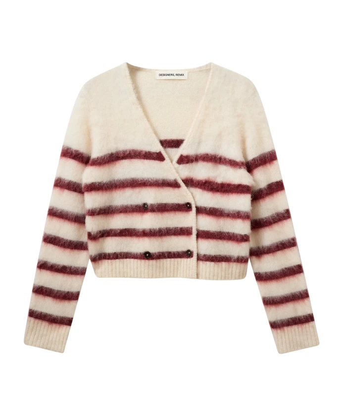 Куртка Verona Brushed Jacket от Designers Remix сочетает в себе мягкую ворсистую смесь шерсти альпаки с едва заметными полосками, создавая теплую и приятную на ощупь вещь. Она идеально подходит в качестве изысканной повседневной куртки для создания простых, структурированных многослойных образов. Ключевые особенности: Бежевый | Кремовый | Бордовые полосы | Смесь шерсти альпаки | Мягкая ворсистая отделка | Теплая | Застежка на две пуговицы | Едва заметный полосатый узор | Свободный силуэт | Вязаная текстура | Размер и посадка: Стандартный крой | Состав ткани и уход: 35% полиамид | 33% альпака | 32% шерсть | Ручная стирка; не отбеливать; не сушить в сушильной машине.