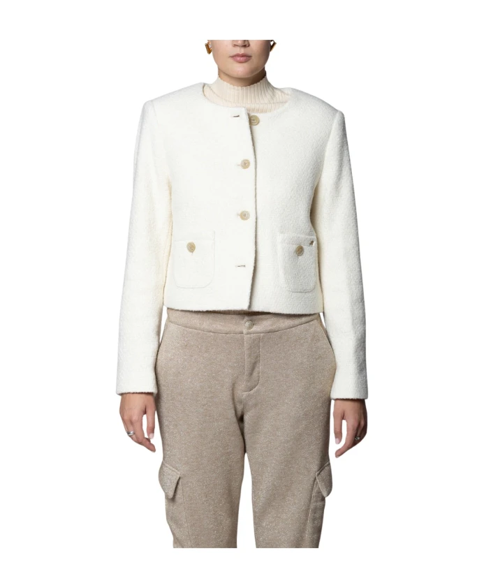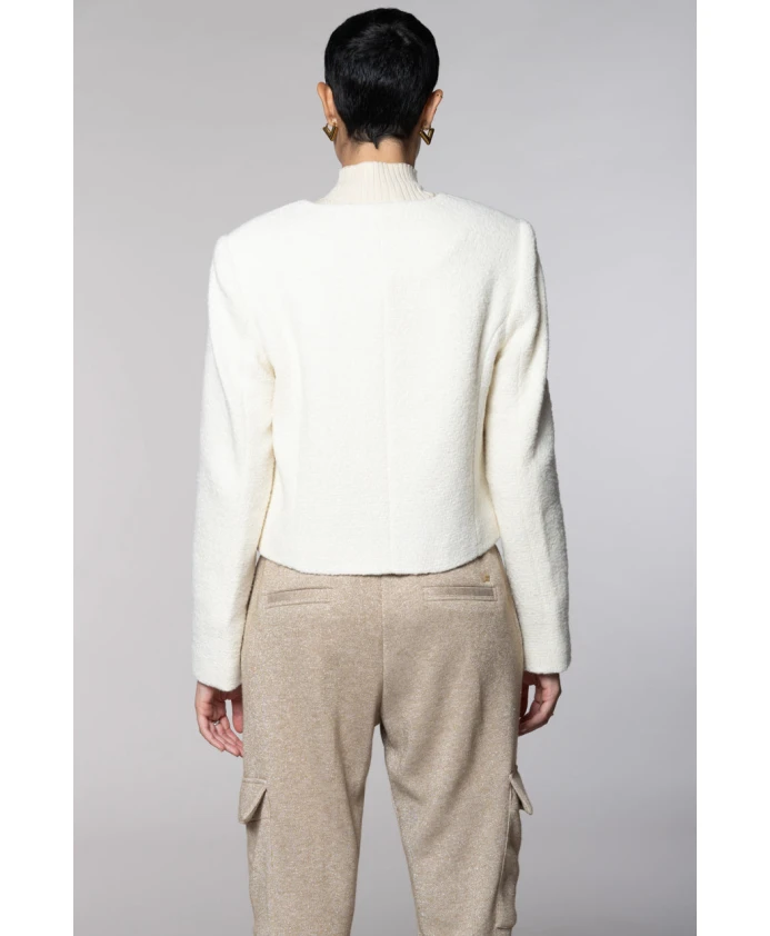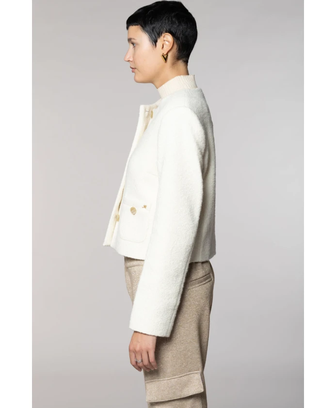 Укороченная куртка Lou Lou от Mason сочетает в себе фактурную букле из шерстяной смеси и укороченный силуэт, что позволяет легко создавать многослойные образы. Это универсальная легкая куртка, подходящая как для повседневных, так и для более нарядных образов. Ключевые особенности: Бежевый | Панна | Кремовый | Букле из шерстяной смеси | Накладные карманы | Застежка на пуговицы | Укороченный силуэт | Текстура букле | Подплечники | Вытачки | Деталь в виде заклепок M | Размеры и посадка: Удобная, гибкая посадка | Состав и уход: 30% полиэстер | 24% шерсть | 22% другие волокна | 12% вискоза | 8% хлопок | 4% синтетическое волокно