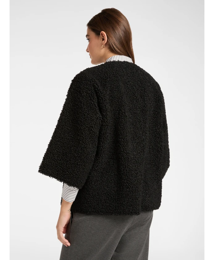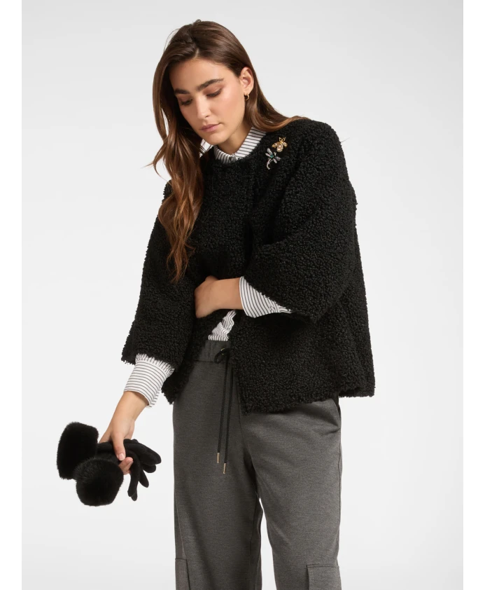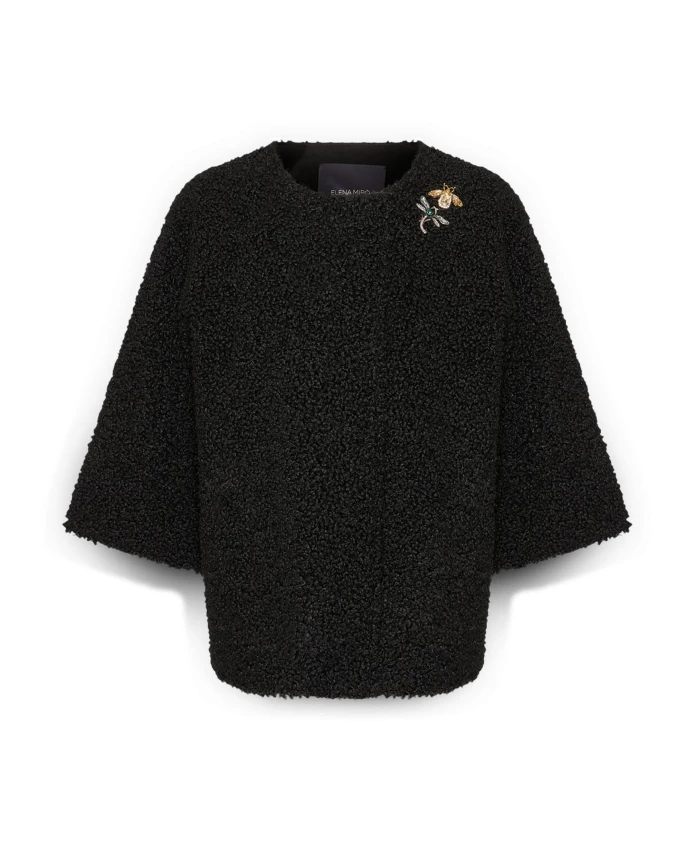 Куртка «Тедди» от Elena Miró - мягкая, слегка А-образная куртка из ворсистой плюшевой ткани, обеспечивающая облегающий силуэт и гибкие возможности для создания различных образов благодаря съемным булавкам. Ключевые особенности: Черный | Полиэстер | Съемные булавки | Скрытая застежка на кнопки, пришитые вручную | Прорезные карманы | Круглый вырез | Рукава три четверти | Ворсистая плюшевая текстура | Слегка А-образный силуэт | Размеры и посадка: Облегающий крой | Состав ткани и уход: 100% полиэстер | Машинная стирка в холодной воде (30°C); не сушить в сушильной машине; не отбеливать; не подвергать химчистке; не гладить