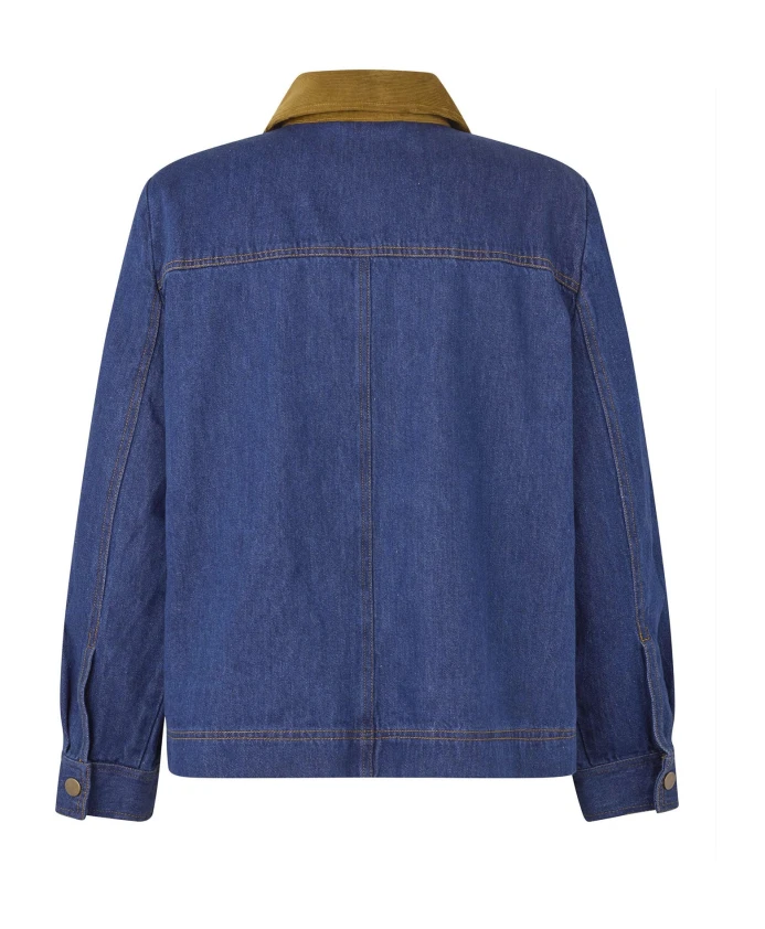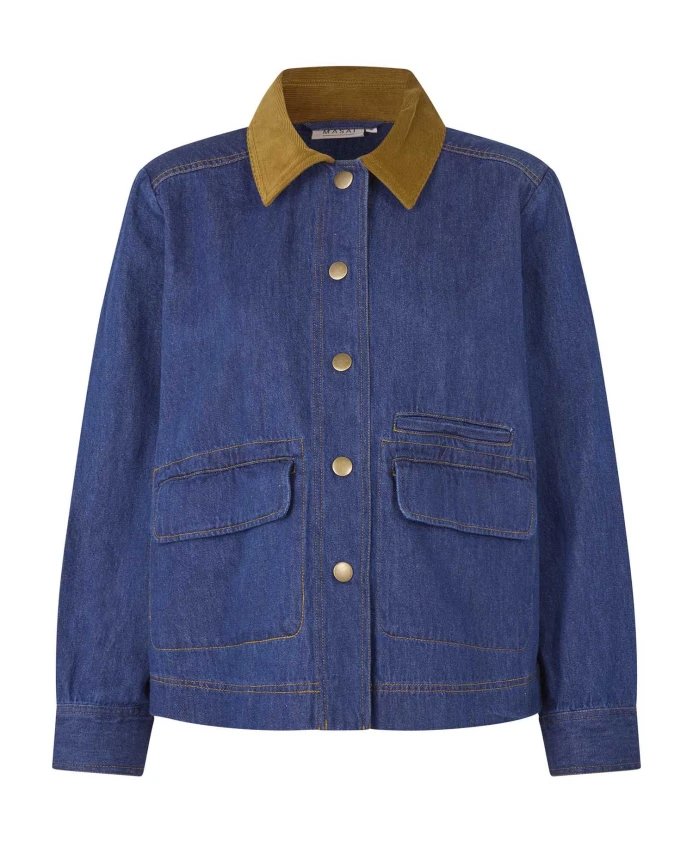 Джинсовая куртка Masai Julemi обновляет классический джинсовый образ контрастным золотистым вельветовым воротником и золотыми кнопками, создавая современный, повседневный стиль. Мягкий деним темного цвета и большие карманы делают ее удобным верхним слоем поверх платьев, рубашек или джинсов. Ключевые особенности: Синий | Темный деним | Хлопок | Мягкая, приятная на ощупь ткань | Застежка на кнопки | Большие передние карманы | Контрастный вельветовый воротник | Золотистые кнопки | Темная отделка | Большие передние карманы | Размеры и посадка: Свободный крой | Состав ткани и уход: 100% хлопок | Бережная машинная стирка