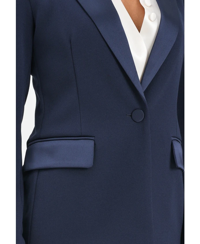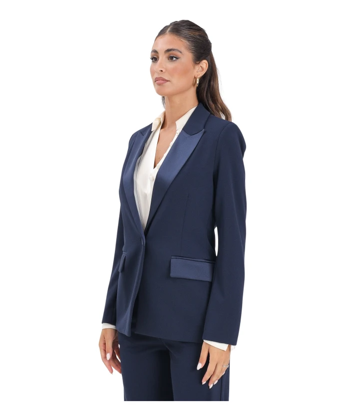Синяя женская куртка VICOLO - это стильная и утонченная вещь, идеально подходящая для элегантного создания образа. Изготовленная из фактурной ткани, она имеет приталенный крой, однобортную застежку на пуговицы и атласные лацканы в тон, которые добавляют яркости и изысканности дизайну. Накладные карманы дополняют классический силуэт, а прямые линии обеспечивают безупречную и универсальную посадку. Модель носит размер S, рост 170 см. Рекомендуется глажка при средней температуре. Сезон осень/зима. Синяя женская однобортная куртка, стандартный крой, осень/зима TF0304A89.