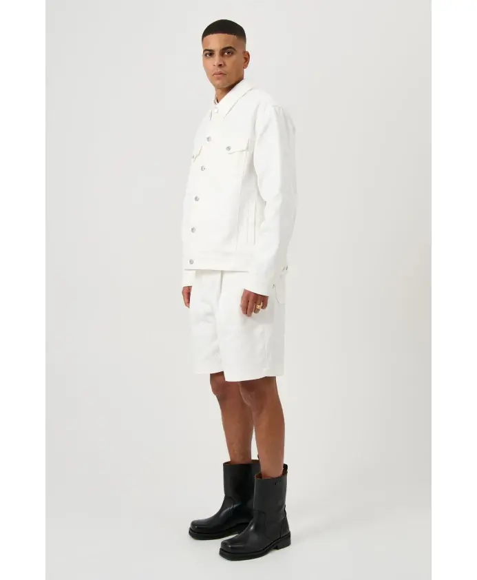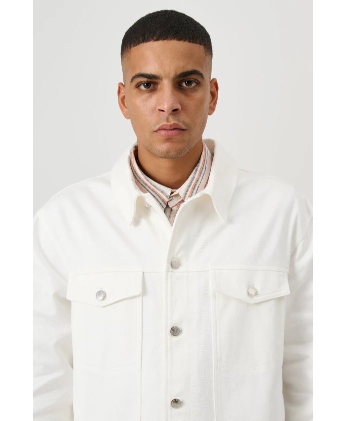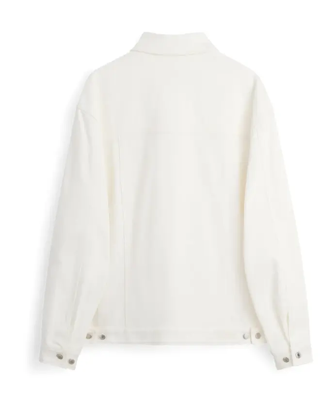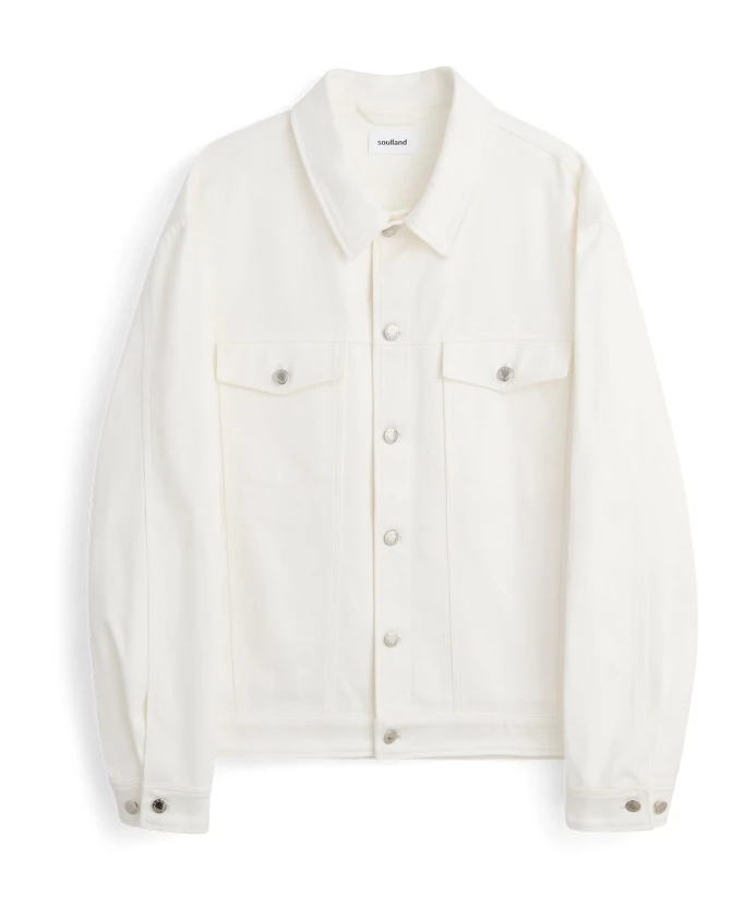 Куртка DECLAN имеет свободный крой, рубашечный воротник, застежку на пуговицы спереди и манжеты. Изделие имеет двойную строчку и классические джинсовые передние карманы. Ткань - плотный деним. Белый цвет. Свободный крой. Рубашечный воротник. Соответствует размеру. Эта куртка изготовлена из остатков ткани. 100% хлопок. Ткань поставляется из Италии. Изделие изготовлено в Болгарии. Машинная стирка при 30°C. Остатки ткани - это ткани, которые есть на складе у наших поставщиков, но которые они не смогли продать. Используя такие ткани, мы помогаем минимизировать отходы.