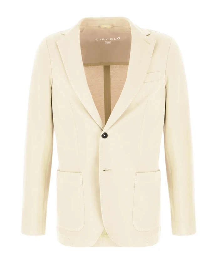 Блейзер Circolo 1901 Premium Basic Jacket - это легкий пиджак из пике, созданный для элегантных повседневных образов. Он сочетает в себе классический силуэт с лацканами и практичные карманы, что делает его универсальным вариантом для повседневной носки. Ключевые особенности: Белый | Сахарный | Хлопок | Легкий | Эластичный | Застежка на пуговицы из рога | Два накладных кармана | Один прорезной карман | Лацканы с люверсами | Манжеты на пуговицах | Двойная шлица сзади | Размеры и посадка: Длина: 73 см (размер IT 50) | Состав материала и уход: 97% хлопок | 3% эластан