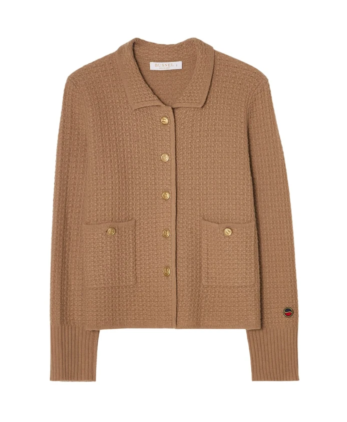 Куртка Goldie от Busnel - это классический кардиган, изготовленный из роскошной шерстяной смеси. Элегантный крой и культовые золотые пуговицы в виде буквы B делают ее ярким элементом любого гардероба. Основные характеристики: Соленый карамельный цвет | Коричневый | 80% шерсть | 20% нейлон | Накладные карманы | Золотые пуговицы в виде буквы B | Классический крой | Размеры и посадка: Классический крой, на бедрах | Соответствует размеру, заказывайте свой обычный размер | Состав и уход: 80% шерсть | 20% нейлон | Ручная стирка в холодной воде