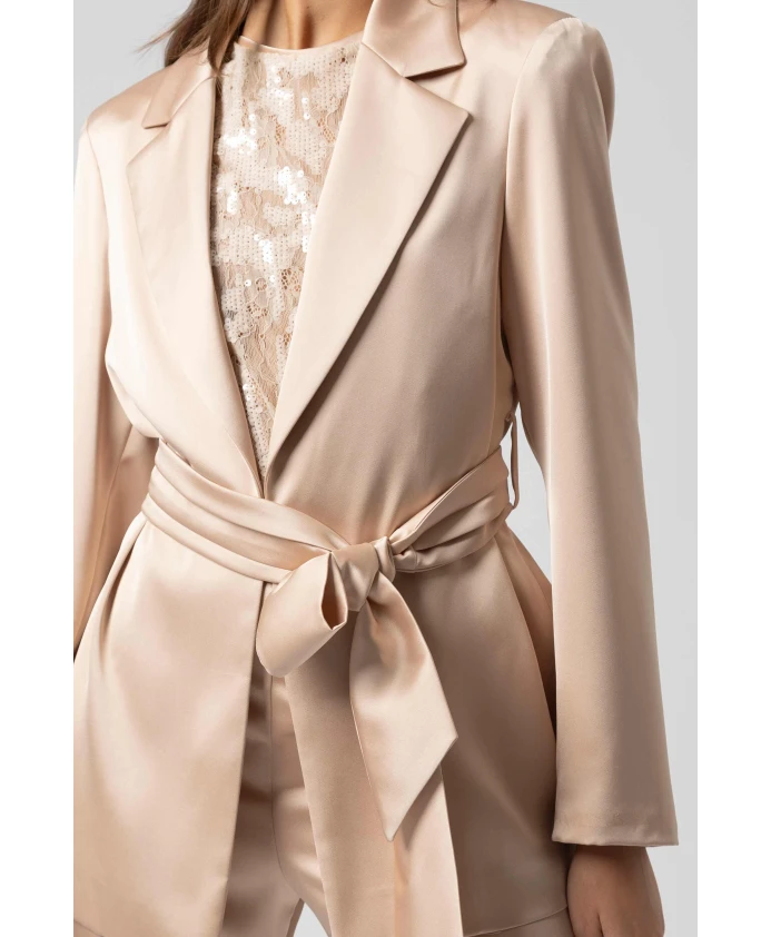 Жакет Kocca CORIALEX - это шелковистый блейзер с запахом, созданный для особых случаев. Он дополнен поясом с перекрещивающимися лямками, завязывающимся бантом, и выраженными глубокими лацканами. Ключевые особенности: Бежевый | Полиэстер | Шелковистая мягкая отделка | Застежка на пояс с запахом | Пояс на талии с бантом | Глубокие лацканы | Силуэт с запахом | Длина до бедра | Пояс из ткани с перекрещивающимися лямками, завязывающийся бантом | Размеры и посадка: Рост модели: 175 см | Модель носит размер S/42 | Состав и уход: 100% полиэстер