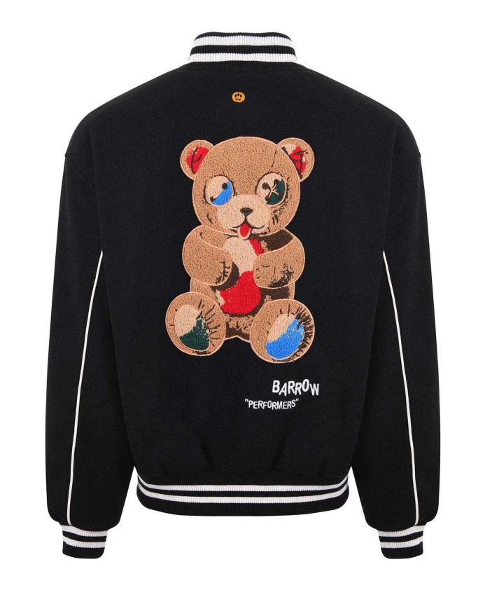 Куртка Barrow Varsity Jacket - это обновленная версия классического университетского стиля с рукавами из искусственной кожи и яркими вышитыми нашивками, созданная для эффектных повседневных и уличных образов. Ключевые особенности: Черный | Полиэстер | Рукава и детали из искусственной кожи | Вышитый логотип Barrow на груди | Большая вышитая нашивка на спине с изображением медведя и надписью «Barrow Performers» | Ребристый полосатый воротник, нижний край и манжеты | Университетский/бомберный силуэт | Состав и уход: 100% полиэстер