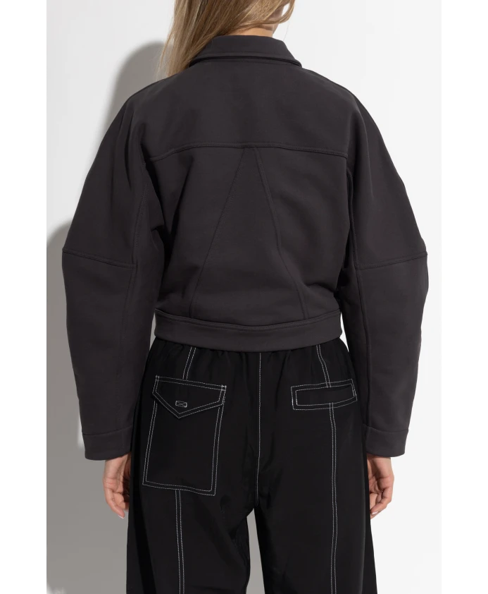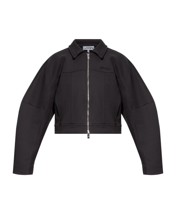 Куртка Ganni с вышитым логотипом - это короткая хлопковая куртка с четко выраженной линией плеч и застежкой-молнией по центру, предназначенная для легкой одежды в прохладные дни. Ключевые особенности: Серый | Хлопок | Трикотаж средней плотности | Застежка-молния спереди | Боковые карманы | Короткая длина | Четко выраженная линия плеч | Воротник рубашечного типа | Вышитый логотип на груди | Аккуратная строчка на рукавах и спине | Размеры и посадка: Укороченный крой | Состав и уход: 100% хлопок | Машинная стирка.