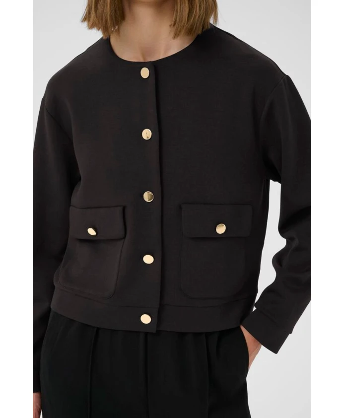 Откройте для себя куртку GidaIW Vincent от InWear. Современная и изысканная куртка с элегантными деталями. Эта куртка имеет прямой, женственный силуэт с круглым вырезом, широкими манжетами и декоративными золотыми пуговицами спереди. Идеально подходит в качестве легкого слоя поверх рубашки или платья - отлично подойдет для работы и выходных. Декоративные золотые пуговицы. Мягкая смесь TENCEL. Квадратные передние карманы с клапанами. Материал: 51% модал (TENCEL), 42% полиэстер, 7% эластан.