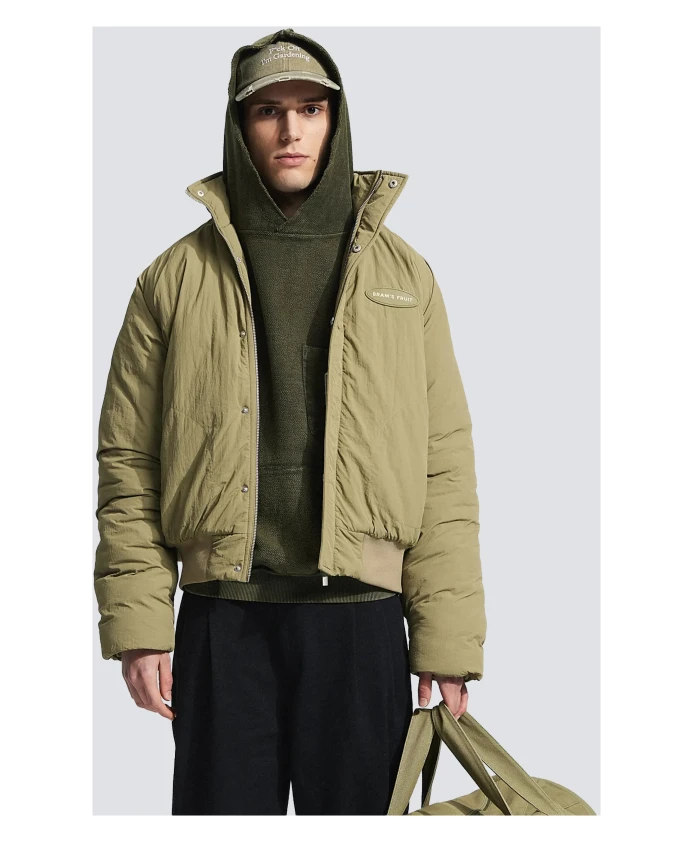 Оставайтесь в тепле и выглядите стильно с нашей стеганой курткой с нашивкой Emblem Patch от Bram's Fruit. Эта мужская зимняя куртка имеет утепленный внешний слой, свободный укороченный крой, уникальный передний карман в стиле боксерской перчатки с застежкой на пуговицу, резиновую нашивку Bram's Fruit на груди, скрытые ребристые манжеты, застежку-молнию со скрытыми кнопками, внутренний карман на молнии и водоотталкивающую нейлоновую внешнюю оболочку. Доступна в различных размерах.