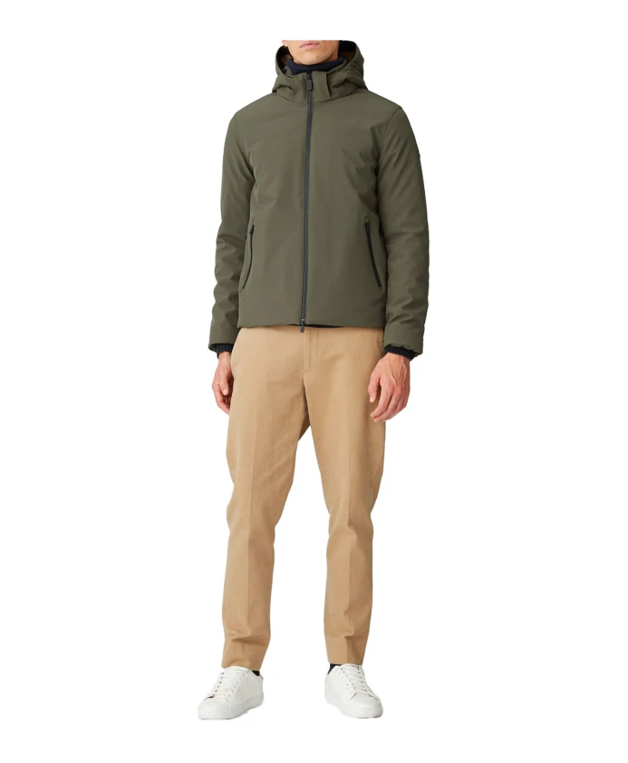 Куртка-пиджак цвета хаки для мужчин, изготовленная из трехслойной ткани софтшелл с ламинированием Dry-Tech и наполненная натуральным пером (90/10). Имеет двойную застежку-молнию, контрастные водонепроницаемые черные молнии и фирменный логотип Ciesse Piumini в тон. Утеплитель обеспечивает теплоизоляцию, функциональность и легкость. Стильные детали подчеркивают динамичный, функциональный и элегантный вид модели Herring, одной из культовых моделей зимней коллекции Ciesse Piumini.