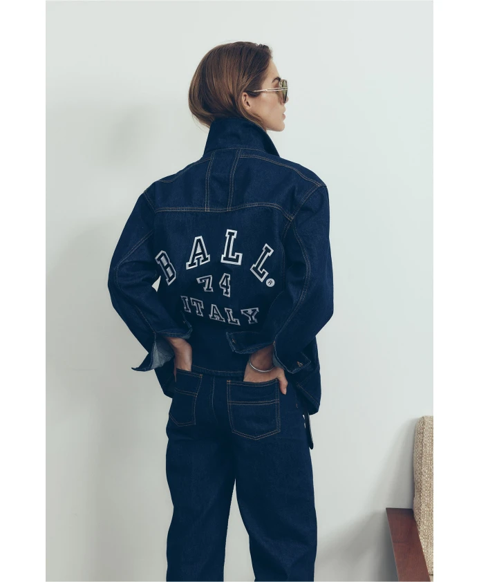 Джинсовая куртка с эффектом выстиранного денима и принтом. Ball, синий