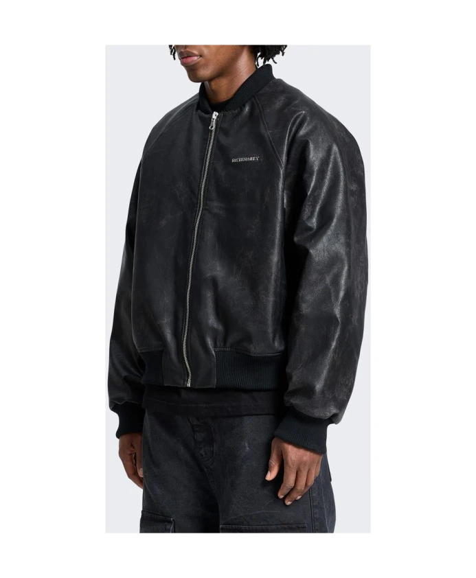 Куртка-бомбер RETERNITY - сочетание винтажной потертости и легкой искусственности с эффектом состаривания создает эффектный повседневный образ. Куртка разработана для уличного стиля и комфортного многослойного ношения. Ключевые особенности: Черный цвет | Искусственная кожа (ПУ) | Молния YKK | Ребристые манжеты и нижний край | Полностью на подкладке | Металлическая нашивка с логотипом на груди | Спущенные плечи | Легкая потертость | Мягкая текстура | Состав и уход: 100% ПУ