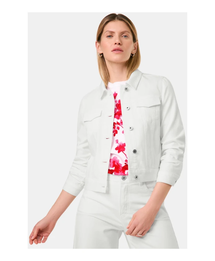 Джинсовая куртка Taifun сочетает в себе классические детали из денима с контрастной строчкой и серебряными джинсовыми пуговицами, создавая универсальный верхний слой на все времена года. Она одинаково хорошо сочетается с джинсами, юбкой или надевается поверх платья для элегантного, но непринужденного образа. Ключевые особенности: Белый | Кремовый | Застежка на пуговицы спереди | Контрастная строчка | Серебряные джинсовые пуговицы | Классические детали из денима