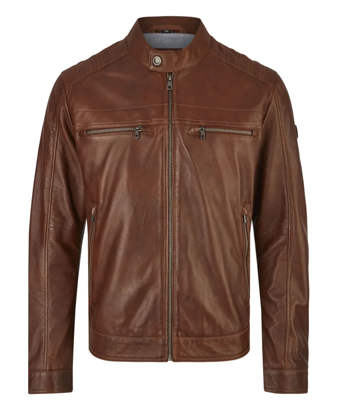 Создайте стильный образ с помощью этой мужской кожаной куртки Bugatti. Куртка отличается удобным кроем благодаря прямому силуэту. Изготовленная из высококачественной овечьей кожи растительного дубления, эта куртка приятна на ощупь. Особые детали включают в себя замысловатую декоративную строчку, манжеты на молнии и классический воротник-стойку с застежкой на кнопках, добавляющие нотку рок-н-ролла. Эта кожаная куртка обязательно станет вашей новой любимой.