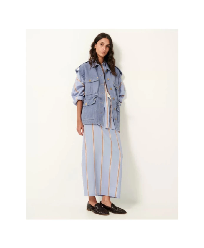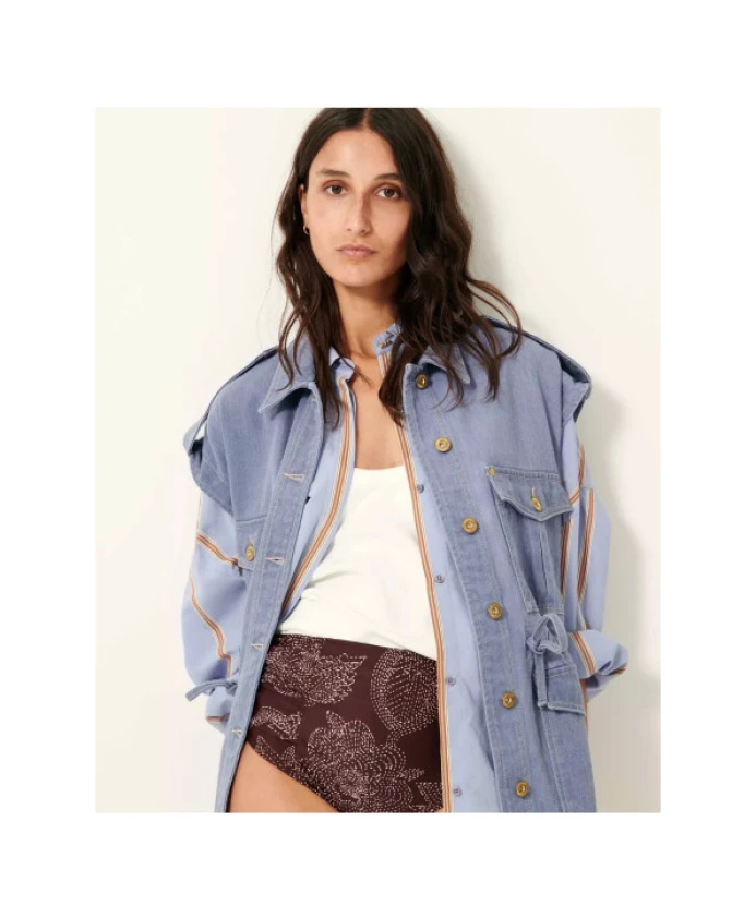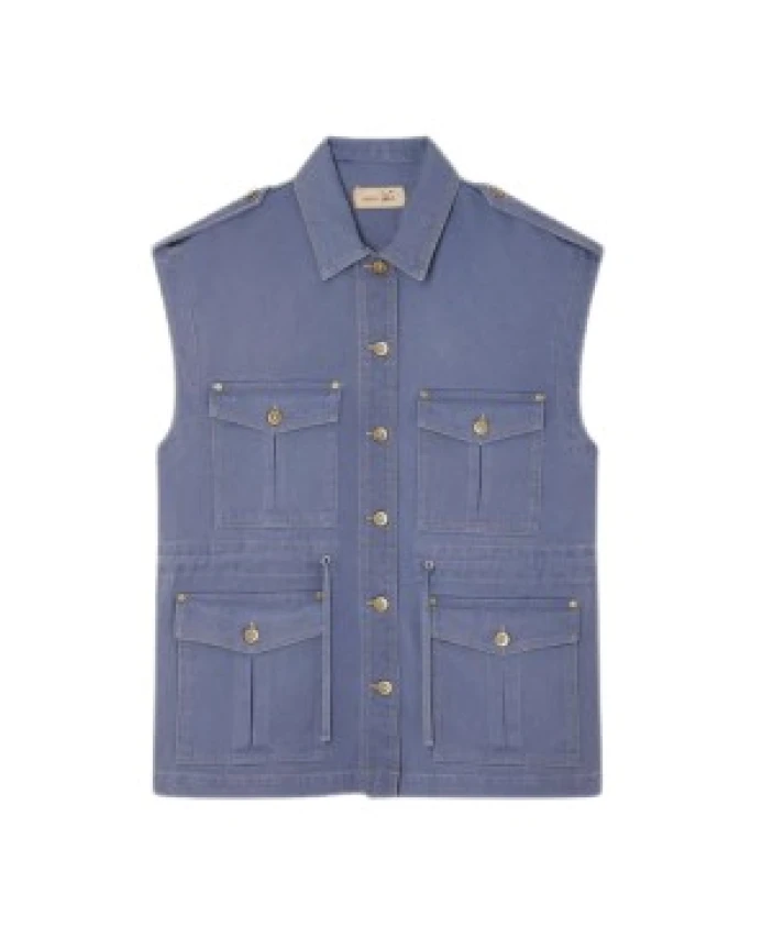 Этот рабочий жилет без рукавов от Sessun сочетает в себе практичность рабочей куртки и крой в стиле милитари. Четыре больших накладных кармана и застегивающиеся на пуговицы плечевые лямки делают его одновременно функциональным и стильным. Регулируемая кулиска на талии добавляет женственности псевдо-милитаристскому дизайну. Изготовленный из 100% хлопкового денима с видимыми швами, этот универсальный жилет идеально подходит для переходных сезонов и случаев.