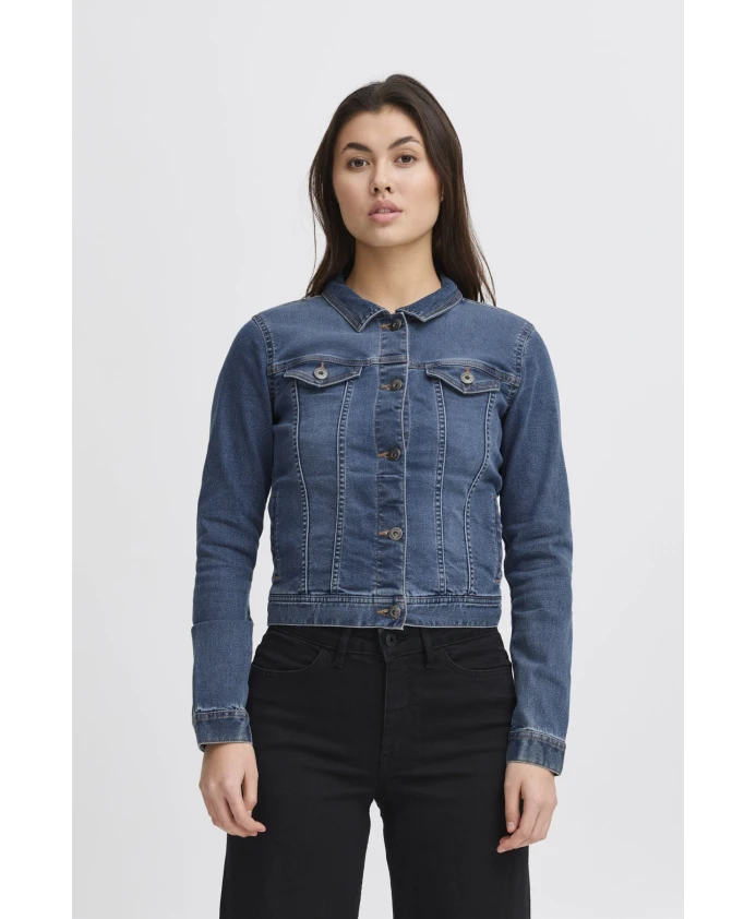 Джинсовая куртка с эффектом потертости, средне-синего цвета. Ichi, синий 8 833₽