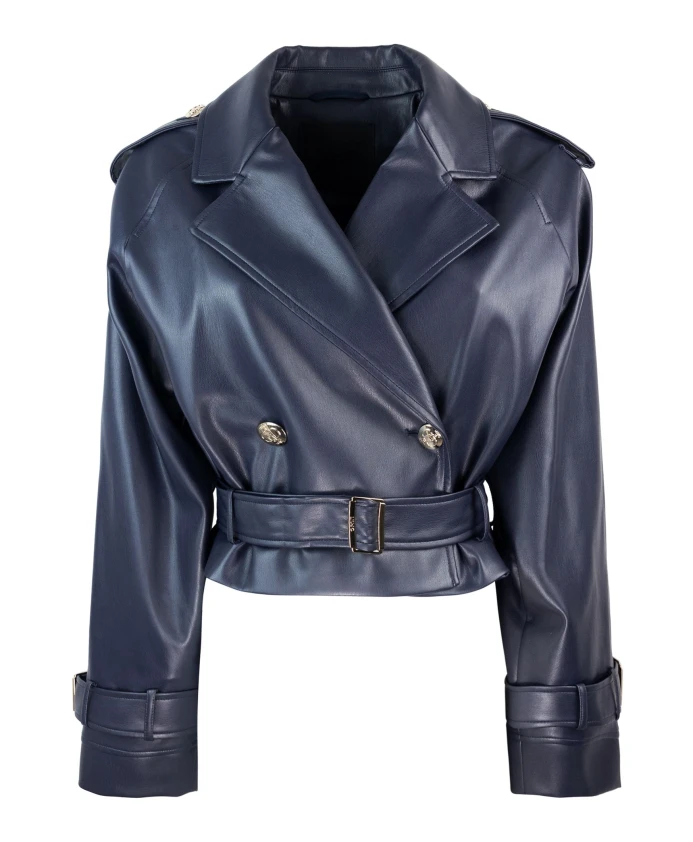 Откройте для себя двубортную байкерскую куртку от Liu Jo - стильное дополнение к вашему гардеробу благодаря элегантному дизайну и универсальному темно-синему цвету, идеально подходящему для любителей городского уличного стиля. Ключевые особенности: Темно-синий | 100% полиэстер | Пояс | Ремешки с пряжками | Отложной воротник | Свободные плечи | Длинные рукава | Застежка на пуговицы | Крой: Свободный | Состав и уход: 100% полиэстер | не указано