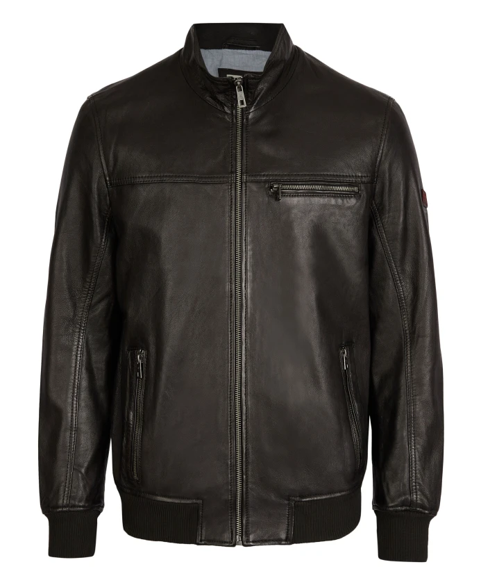 Эта мужская кожаная куртка впечатляет сочетанием классического кроя с воротником-стойкой и современных акцентов, таких как ребристые манжеты на рукавах и подоле, создавая утонченный образ университетской куртки. К другим модным деталям относятся сдержанная декоративная строчка и карманы на молнии. Благодаря удобному крою и высококачественной коже, она не оставляет желать лучшего в плане комфорта. Эта кожаная куртка - всегда хороший выбор!