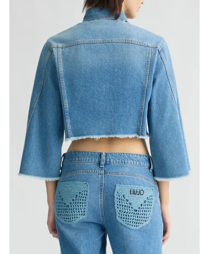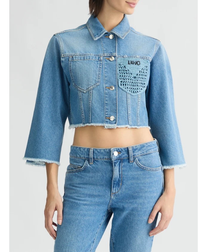 Джинсовая куртка Liu Jo идеально подходит для создания повседневного и модного образа. Изготовленная из мягкого хлопкового денима с эффектом потертости, она имеет воротник рубашечного типа, нагрудные карманы с кружевной отделкой и рукава-кимоно три четверти. Логотип на груди и бахрома добавляют ей неповторимого стиля. Эта стильная и универсальная укороченная куртка застегивается на пуговицы и идеально дополнит любой повседневный образ.
