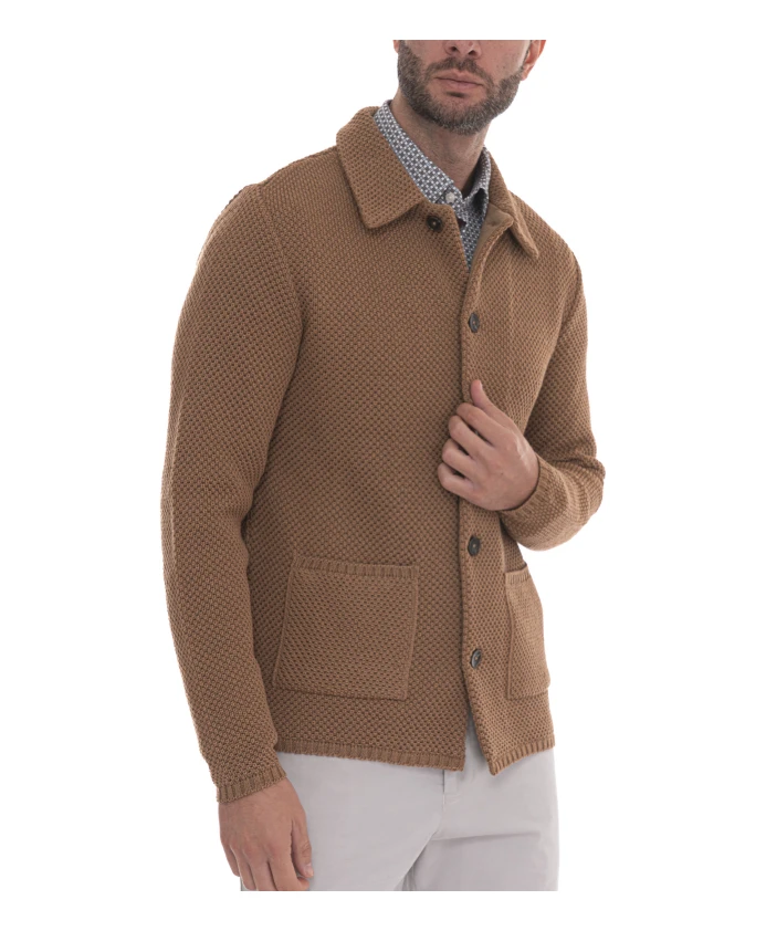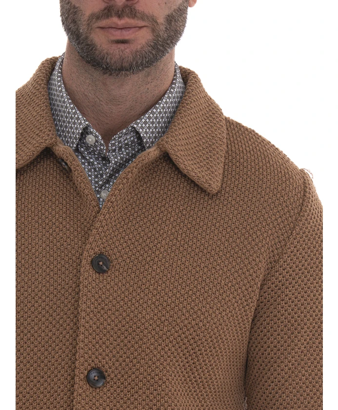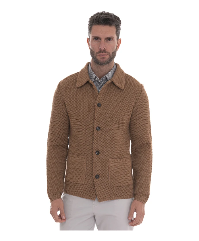 Свитер-жакет Paoloni выполнен из трикотажа с воротником рубашечного типа, застежкой на пуговицы с логотипом и накладными карманами, что позволяет создавать многослойные образы в стиле smart-casual. Ключевые особенности: Коричневый | Верблюжий мех | Смесь шерсти | Застежка на пуговицы с логотипом | Накладные карманы | Воротник рубашечного типа | Трикотажная текстура | Пуговицы с логотипом | Состав и уход: 50% шерсть | 50% акрил